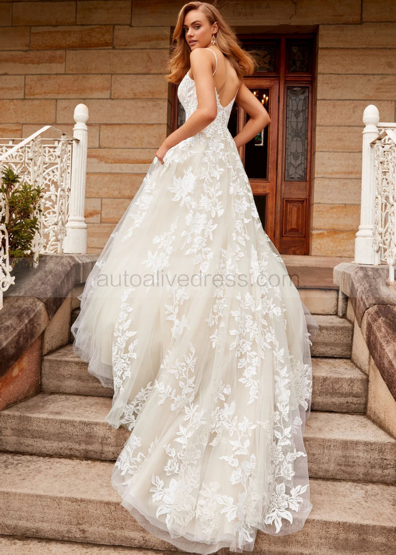 V Neck Ivory Floral Lace Glitter Tulle Gorgeous Wedding Dress