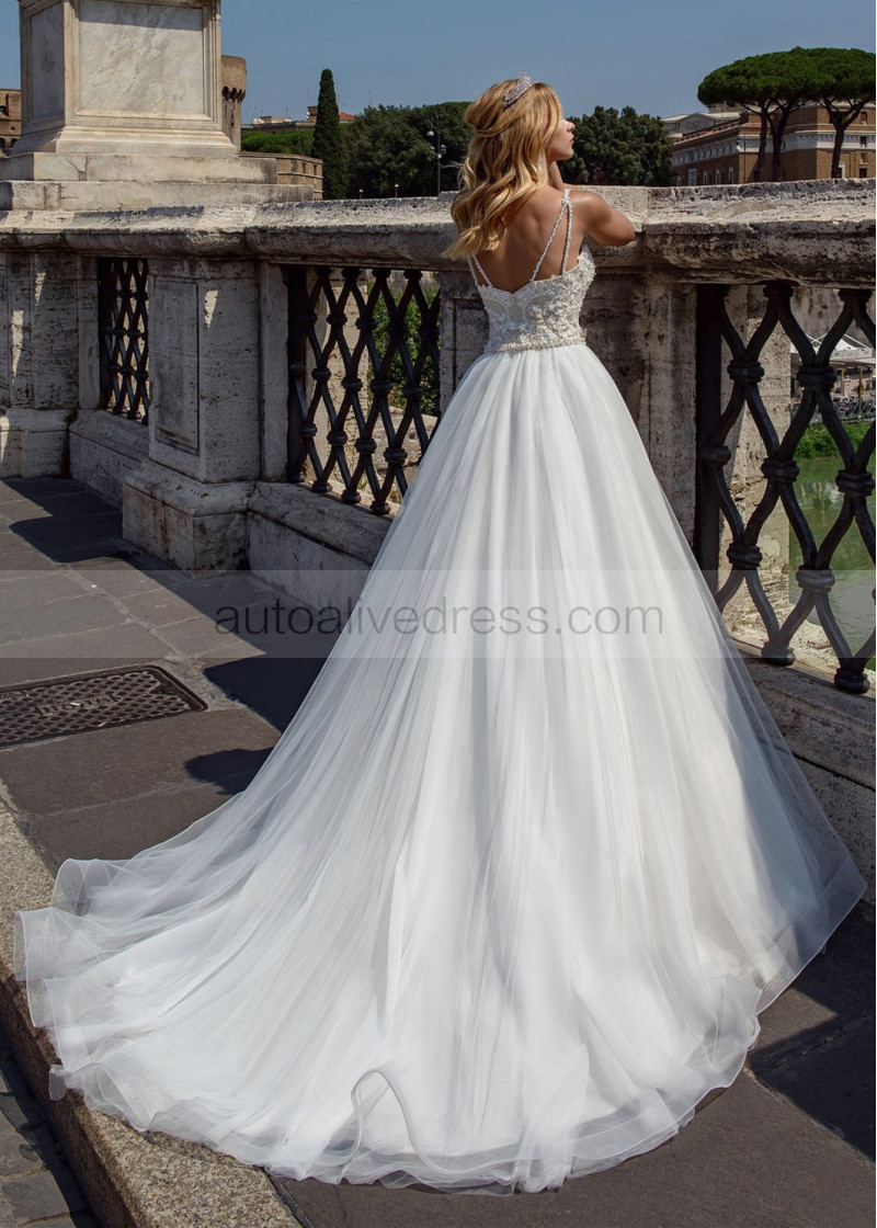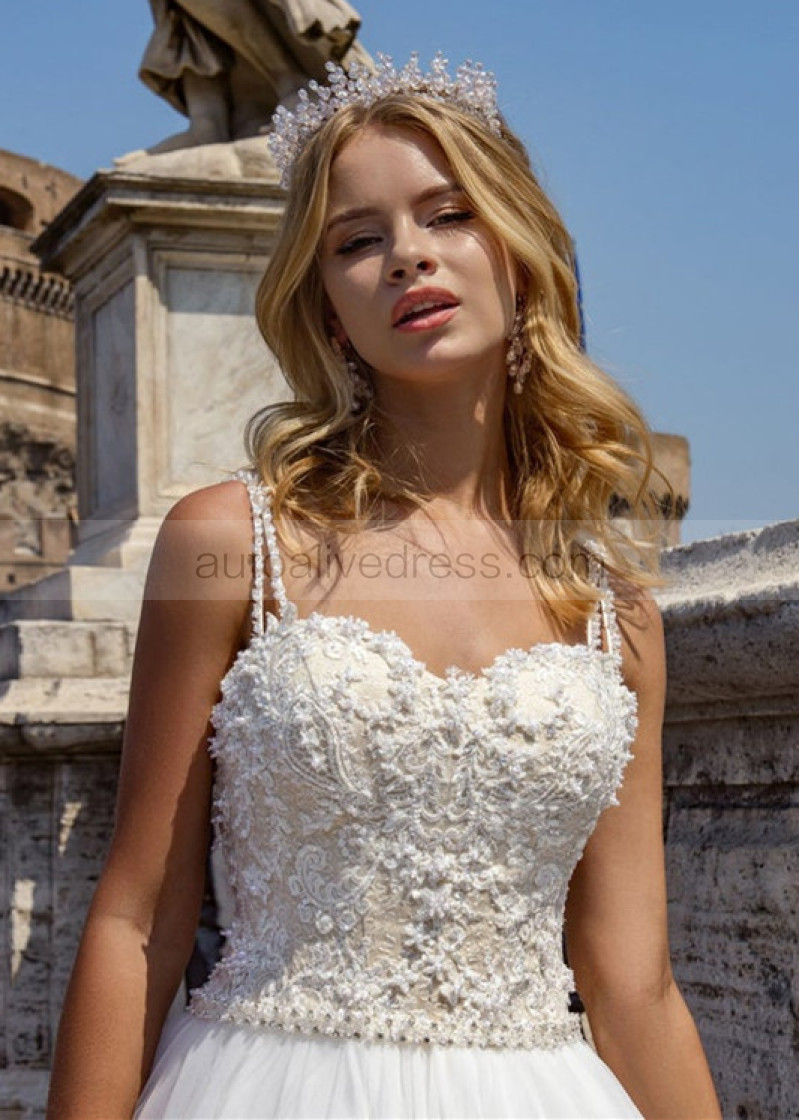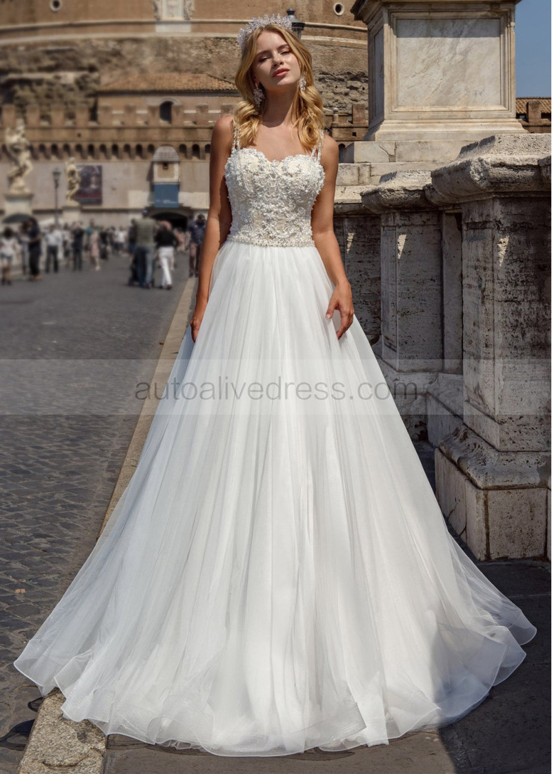 Beaded Double Straps Ivory Lace Tulle Wedding Dress