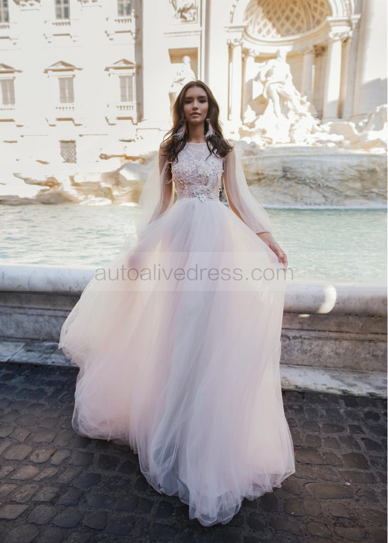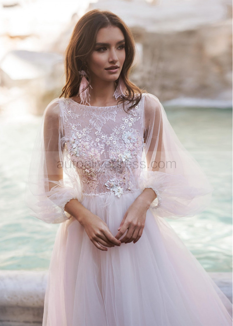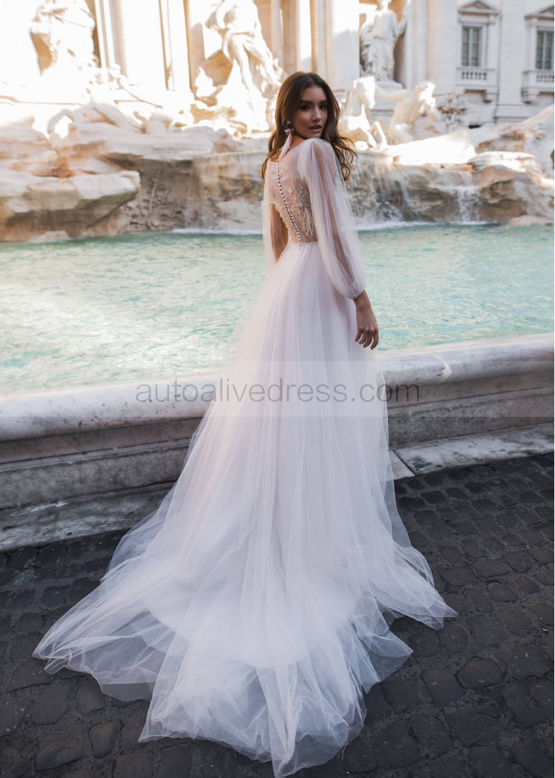 Beaded Illusion Bodice Ivory Lace Tulle Boho Wedding Dress