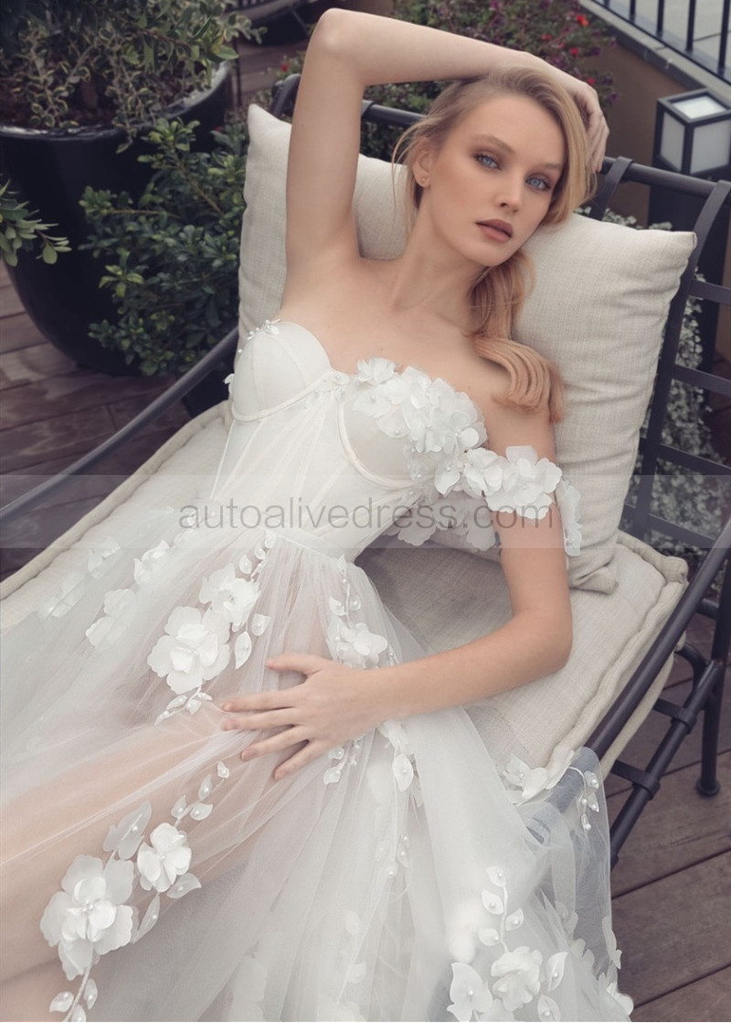 Beaded Ivory Floral Blossom Tulle Wedding Dress