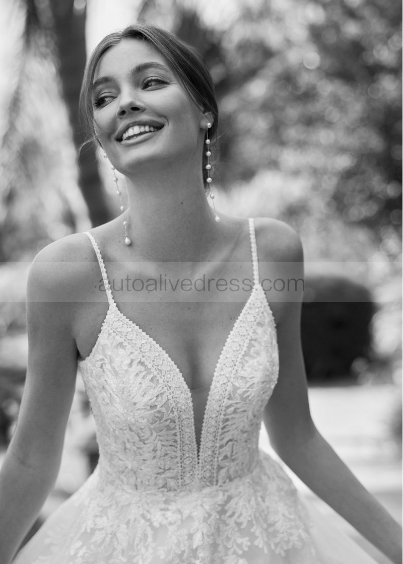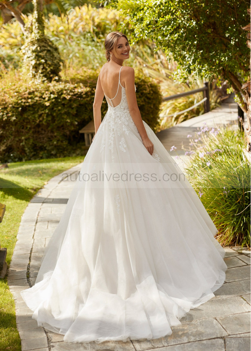 Beaded Ivory Lace Glitter Tulle Sheer Back Princess Wedding Dress