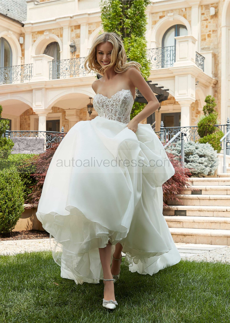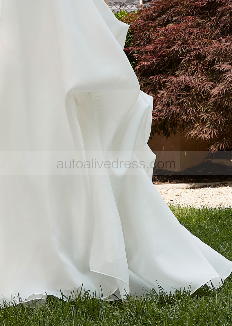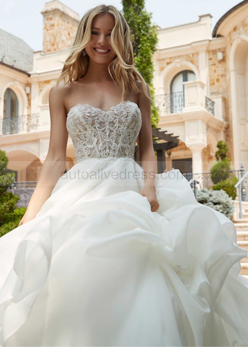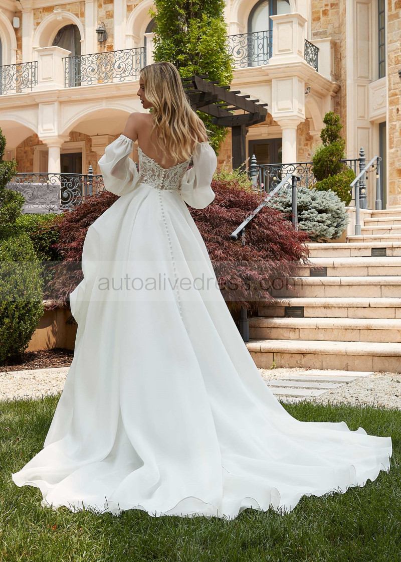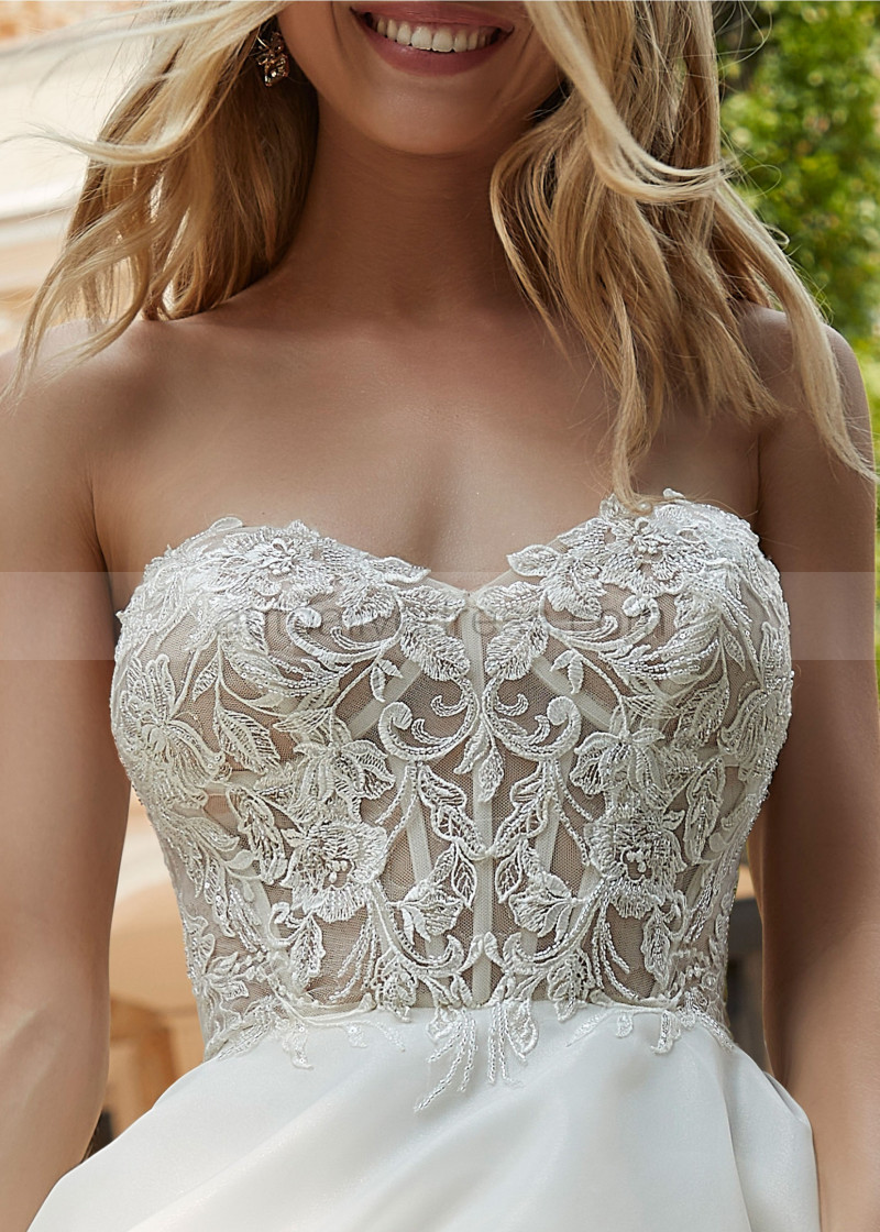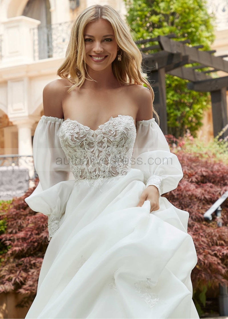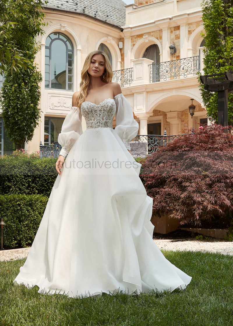 Beaded Ivory Lace Organza Pickup Wedding Dress With Detachable Sleeves