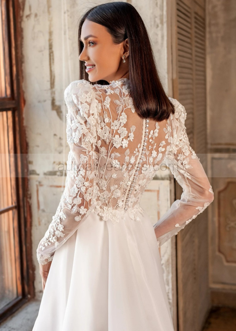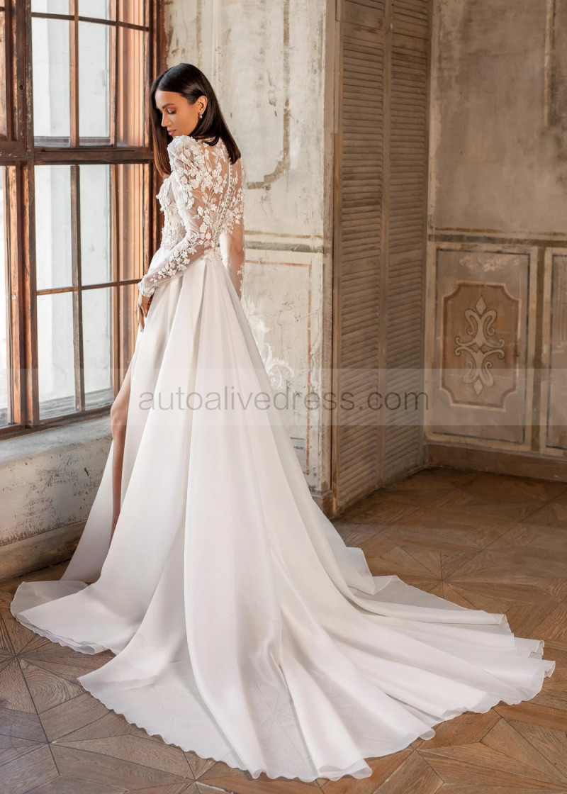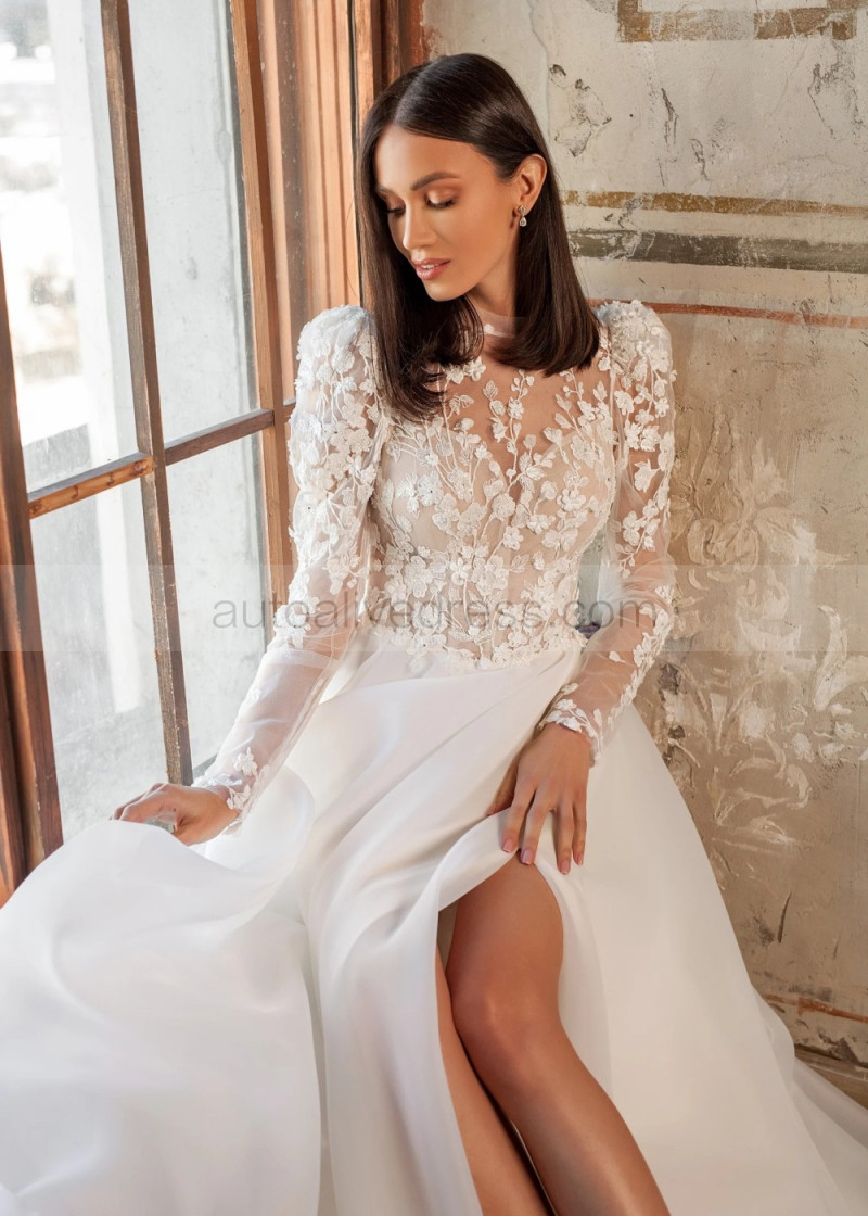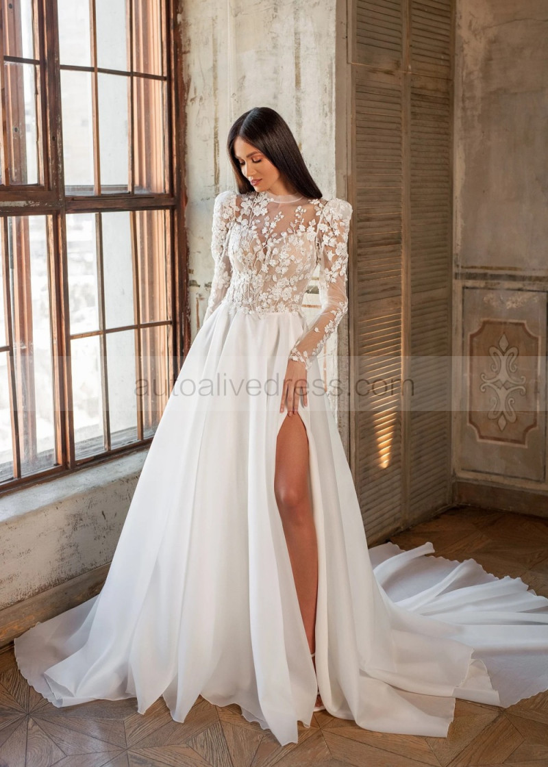 Beaded Ivory Lace Organza Slit Dreamy Wedding Dress