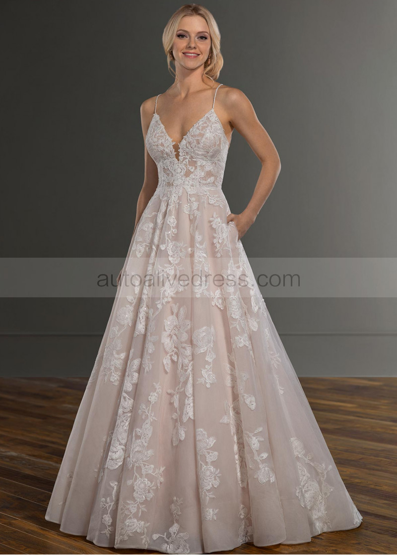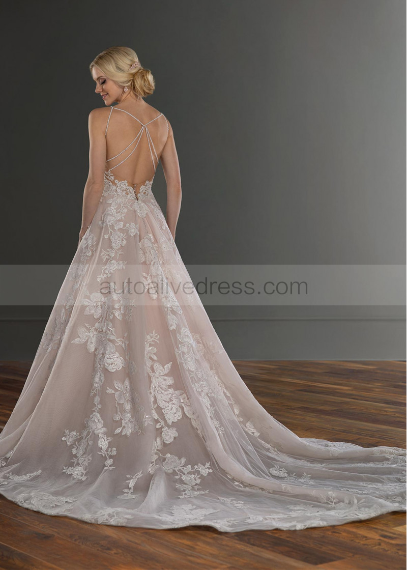 Beaded Ivory Lace Tulle Cross Back Wedding Dress