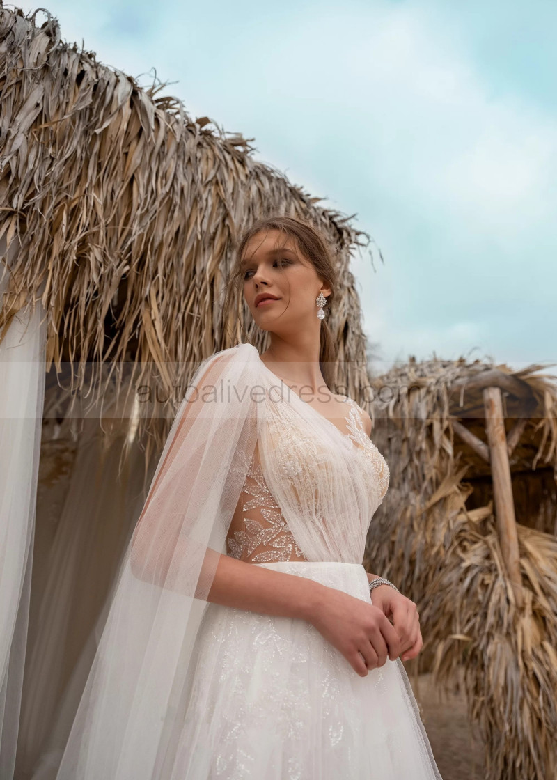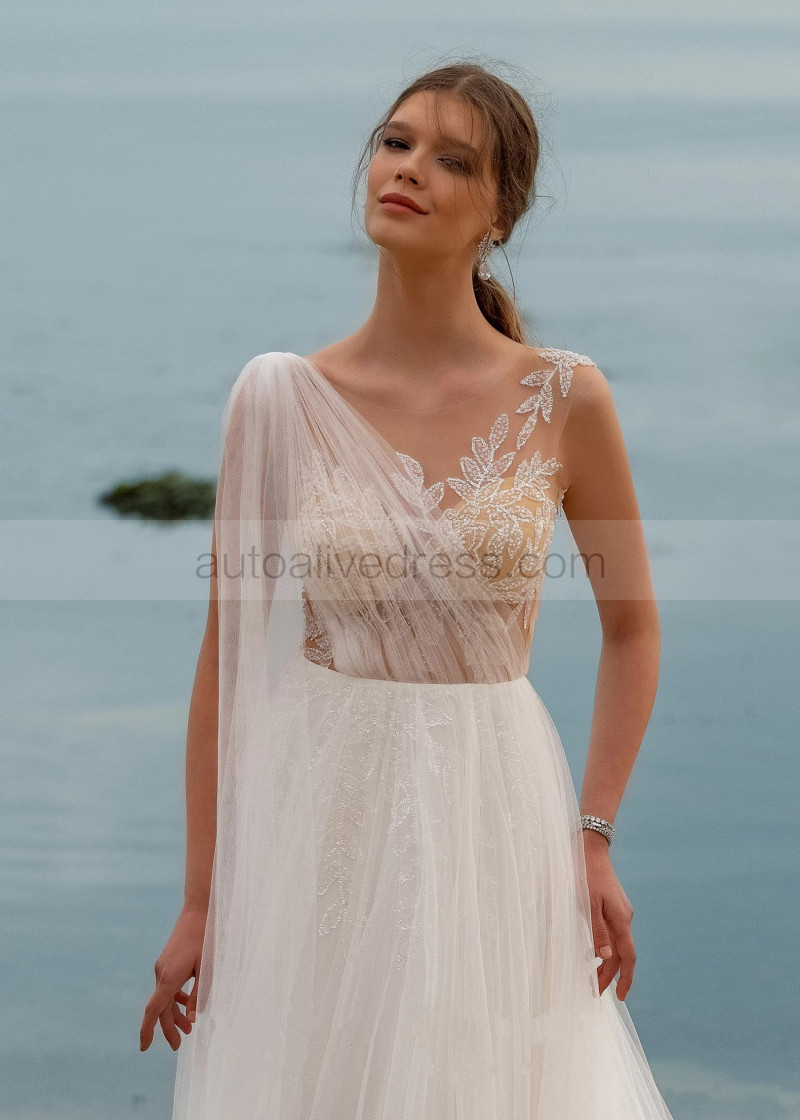 Beaded Ivory Lace Tulle Latest Wedding Dress