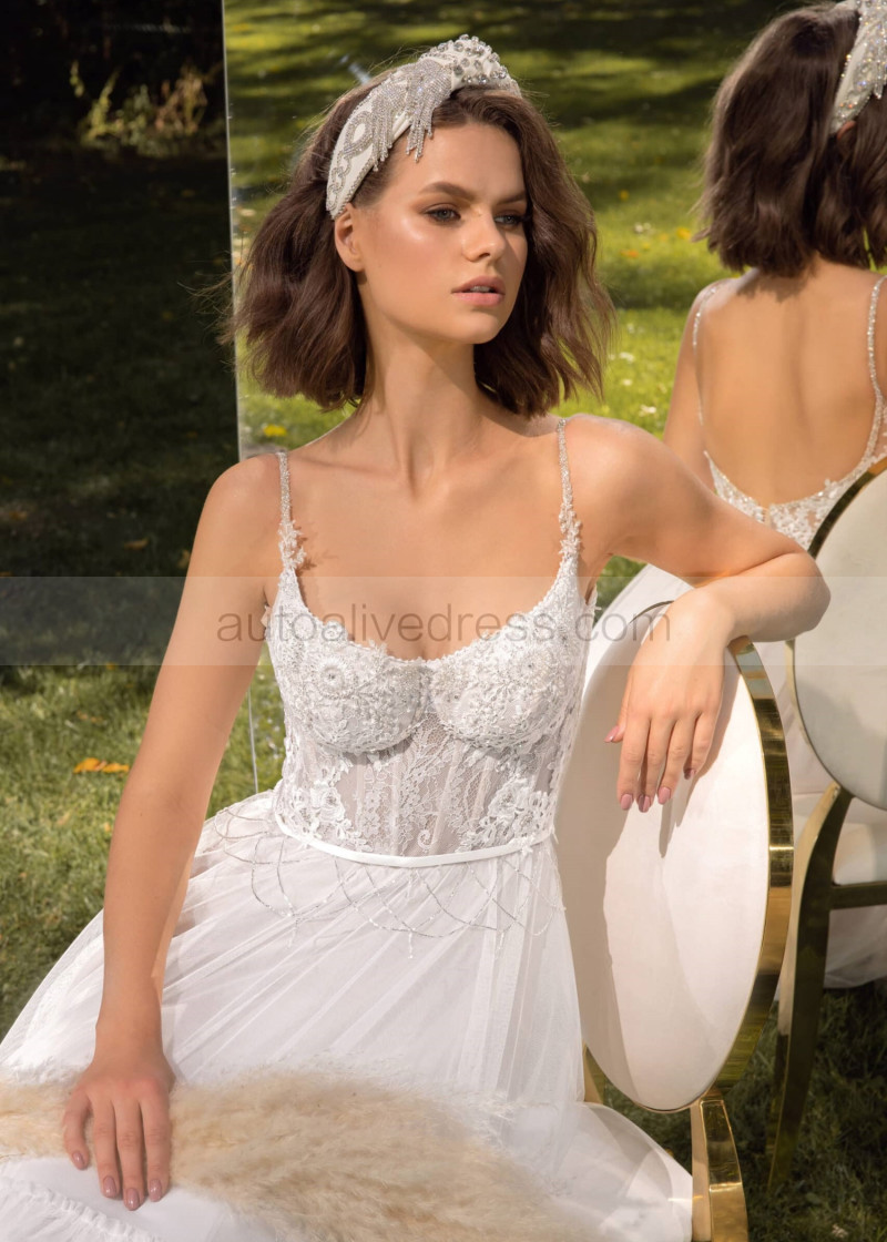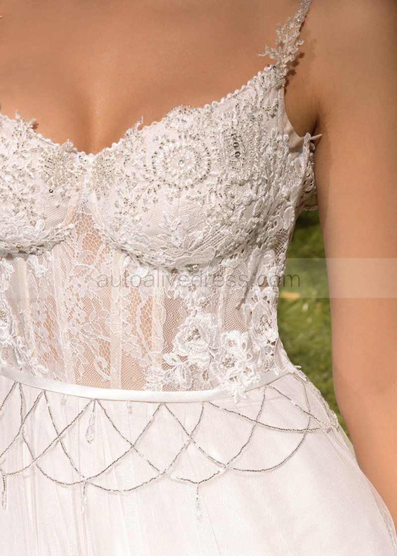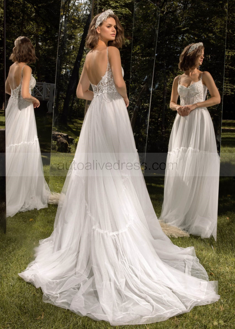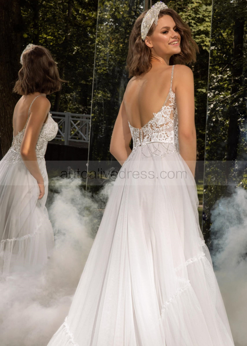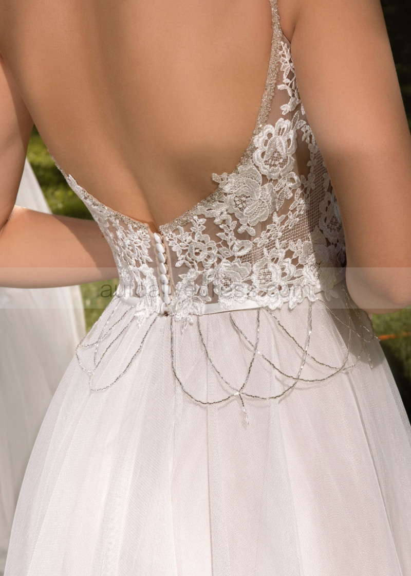 Beaded Ivory Lace Tulle Open Back Fairytale Wedding Dress