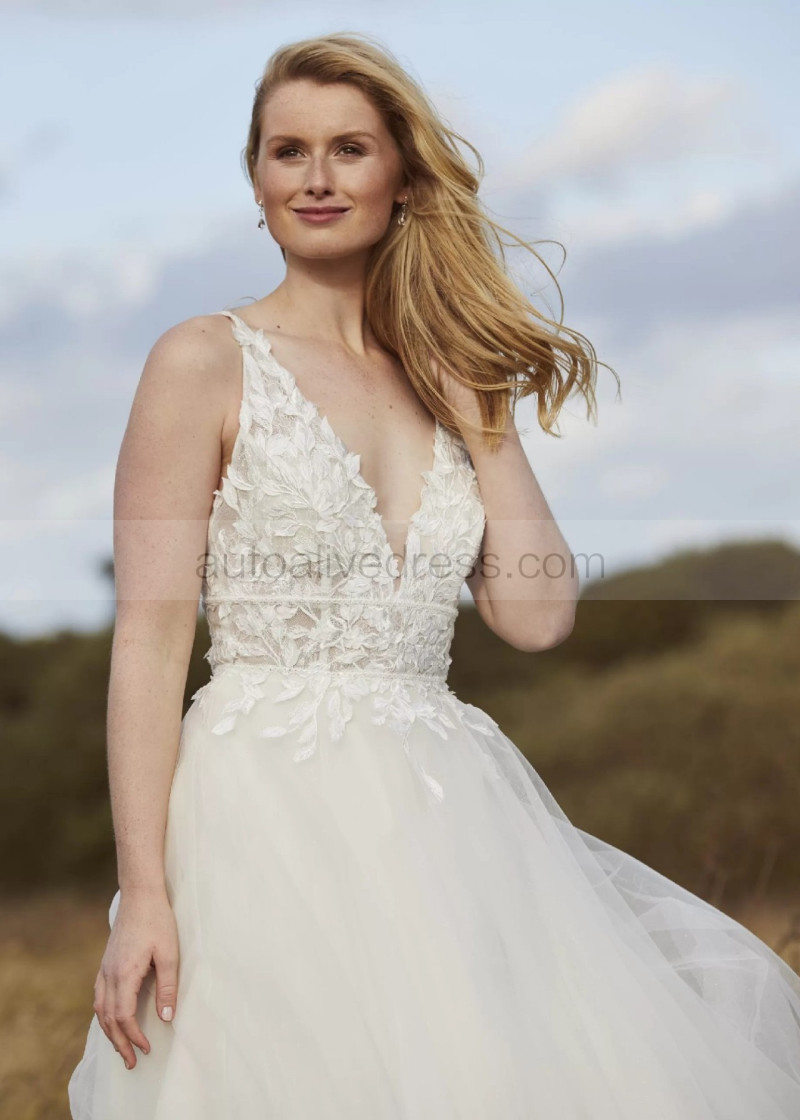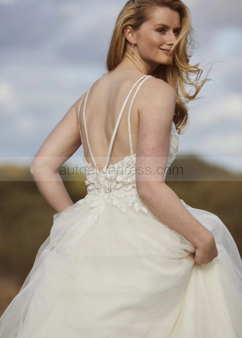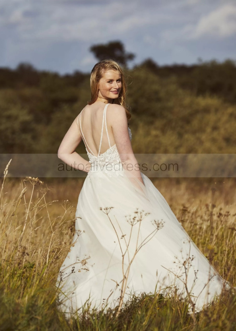 Beaded Ivory Lace Tulle Open Back Wedding Dress