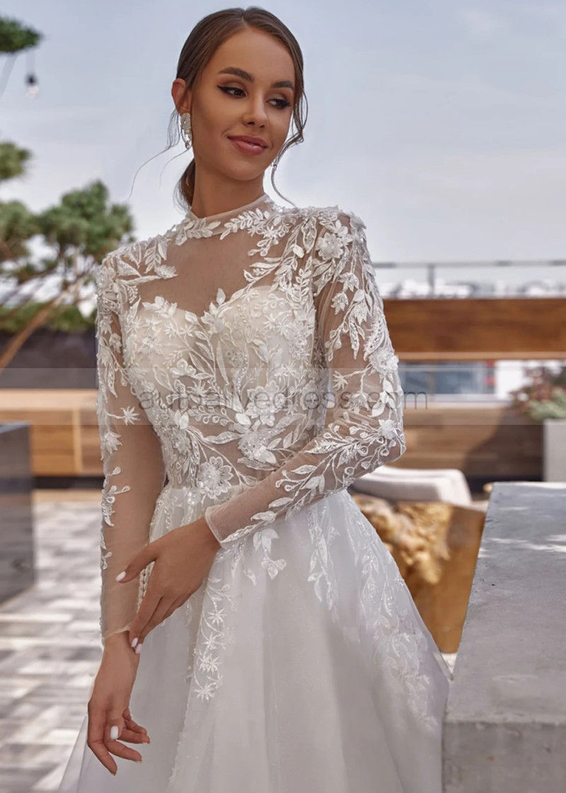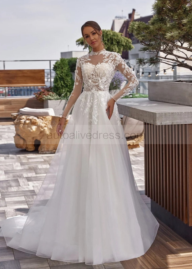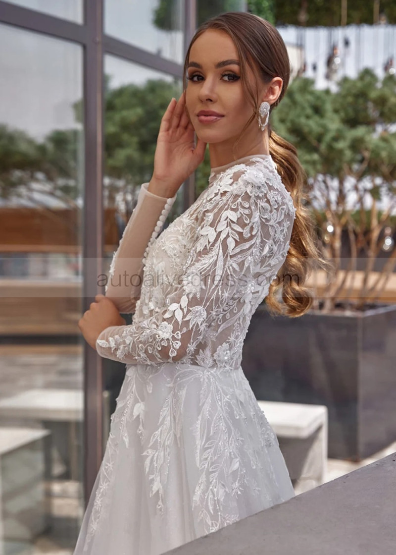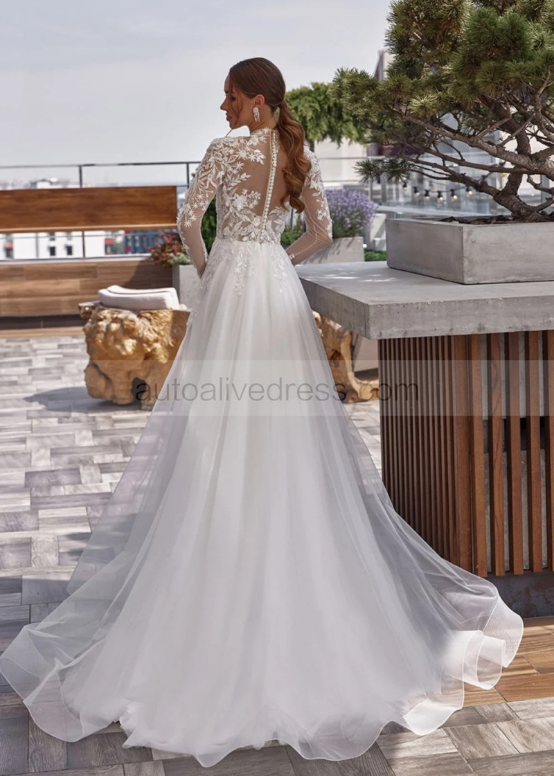 Beaded Ivory Lace Tulle Rustic Wedding Dress