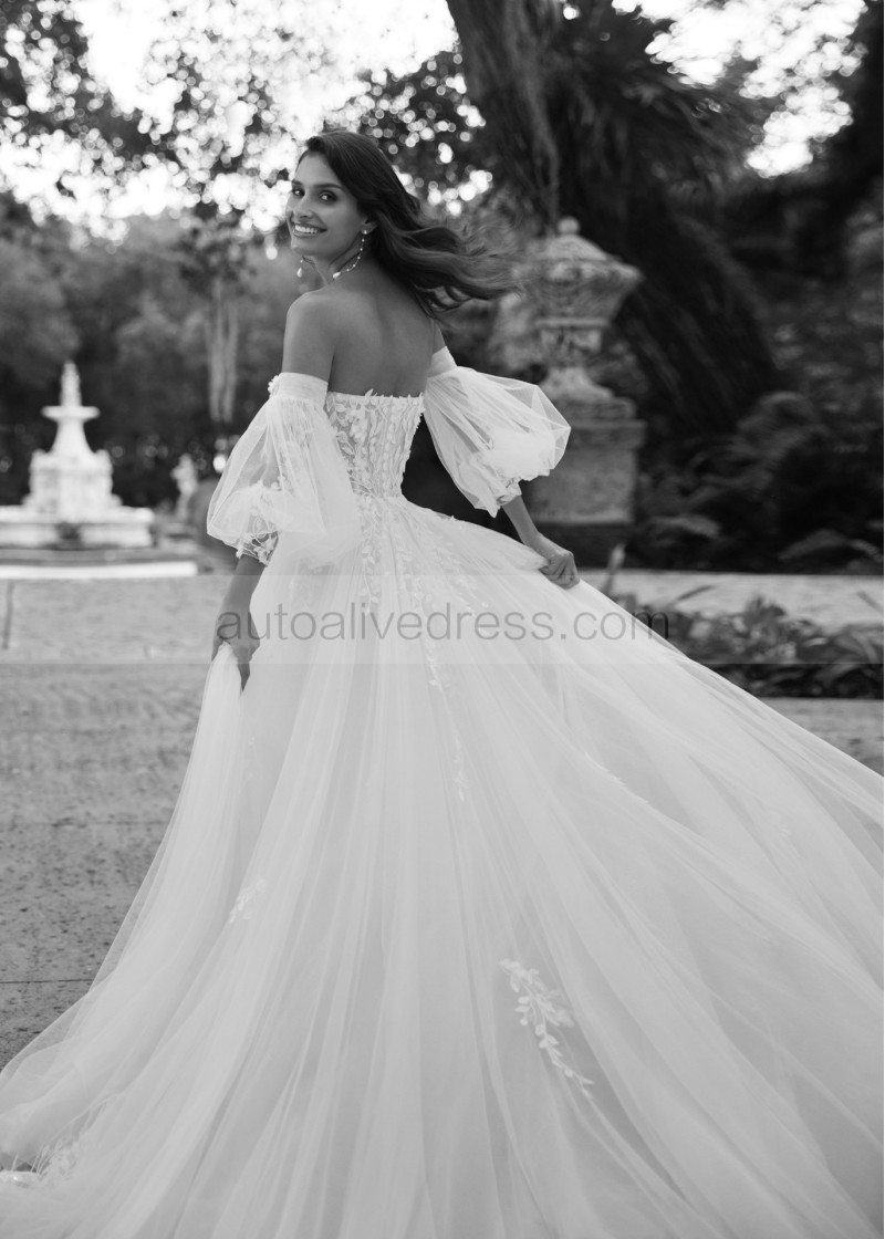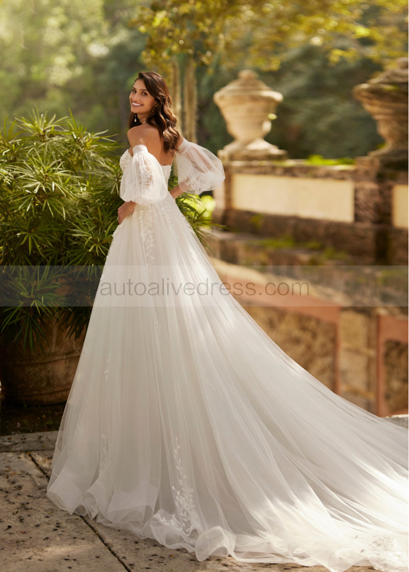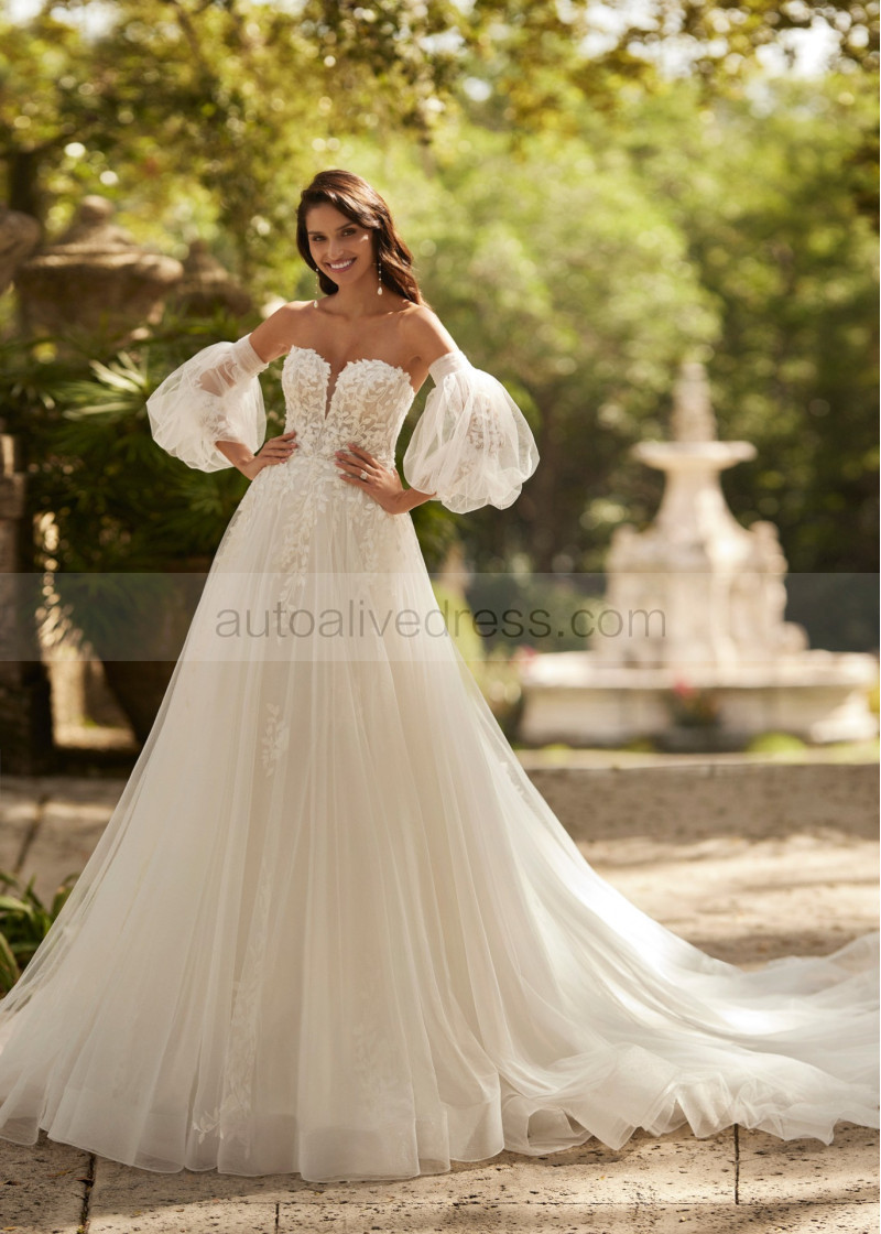 Beaded Ivory Lace Tulle Sweet Wedding Dress With Detachable Sleeves