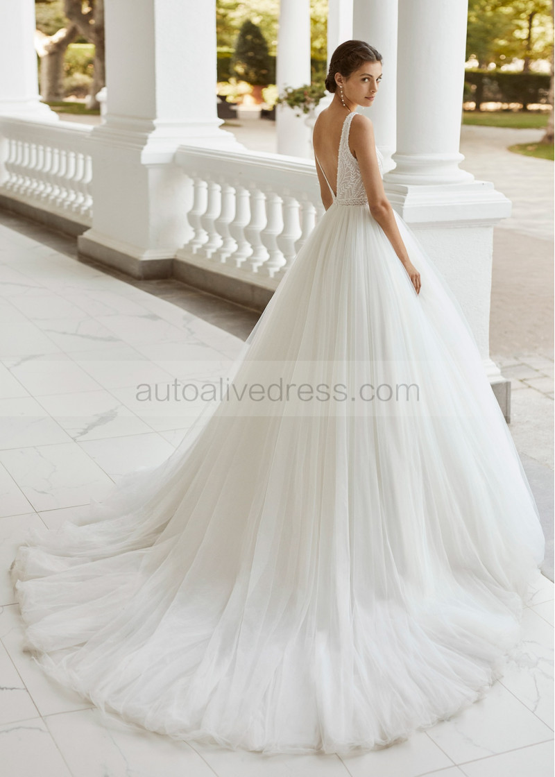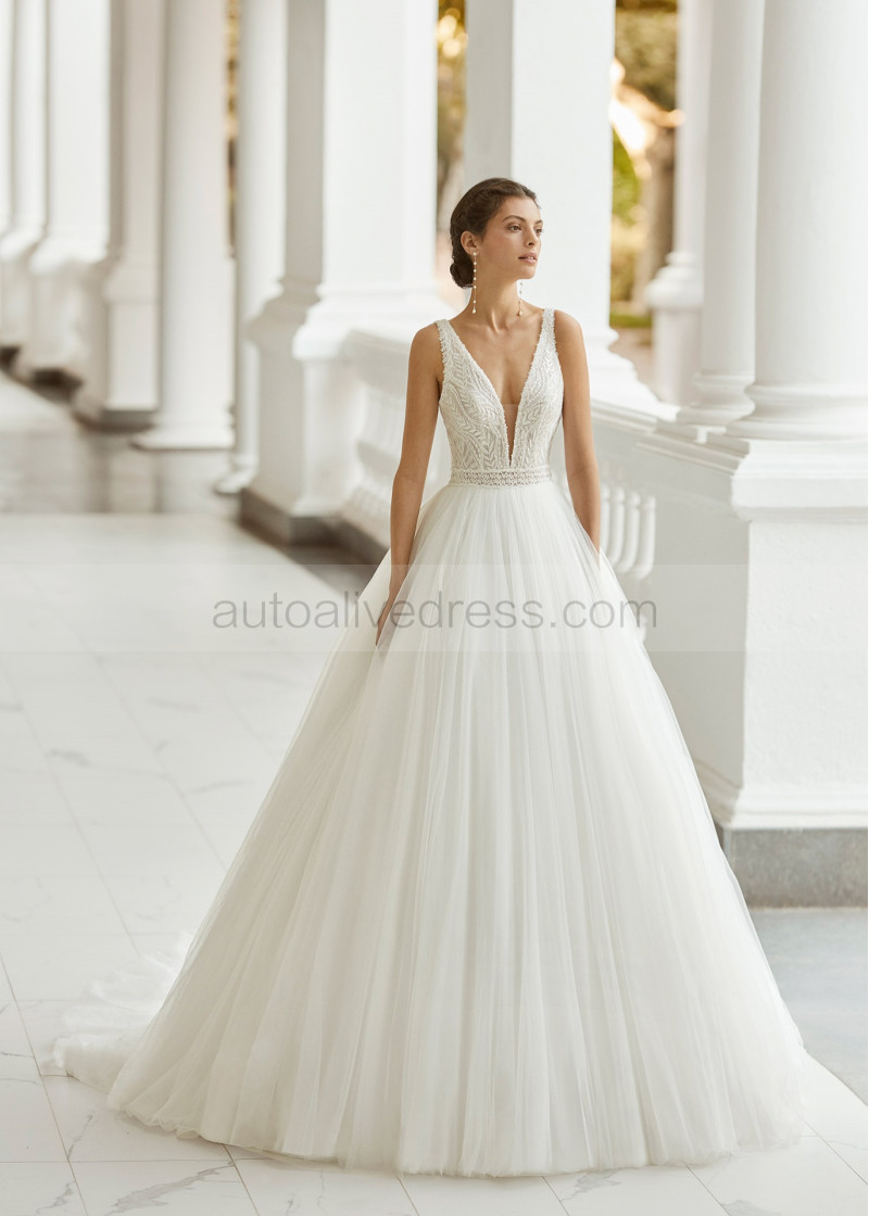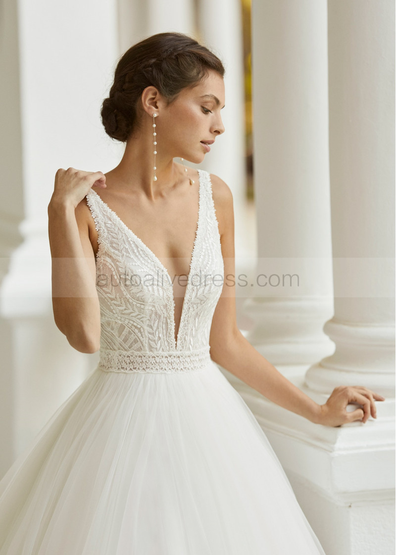 Beaded Ivory Lace Tulle V Back Fashion Wedding Dress