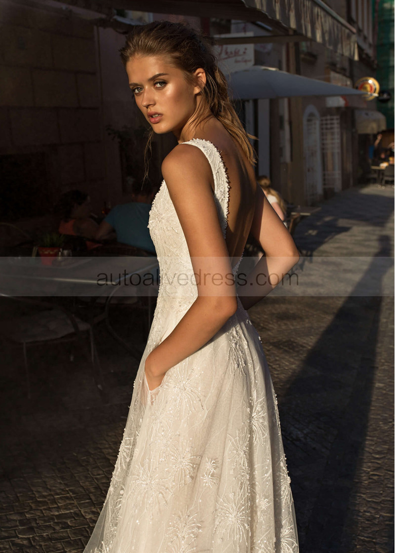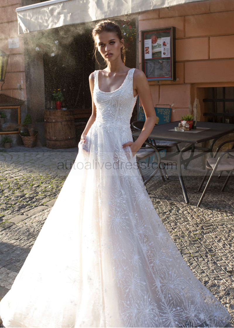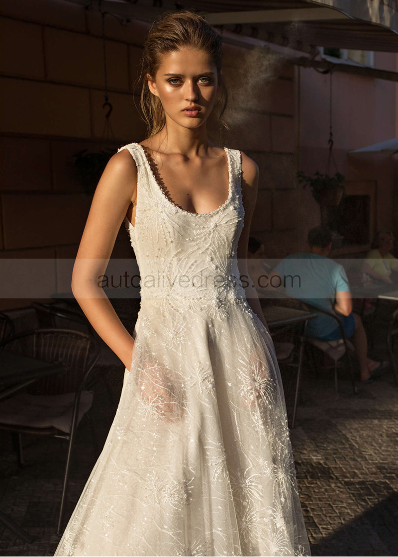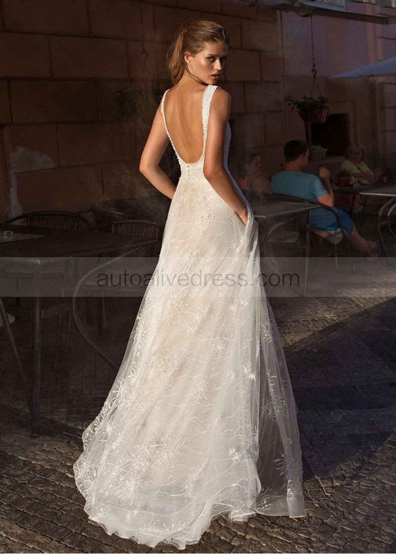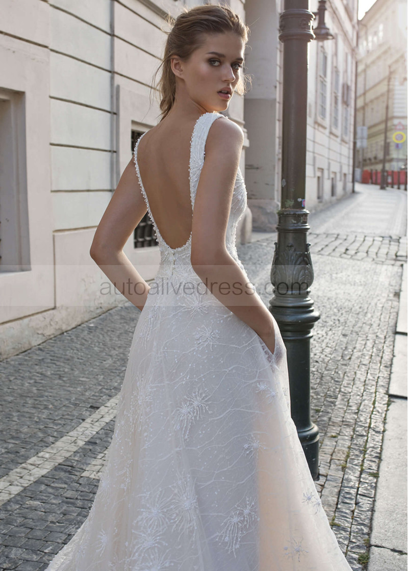 Beaded Ivory Lace Wedding Dress With Side Pockets