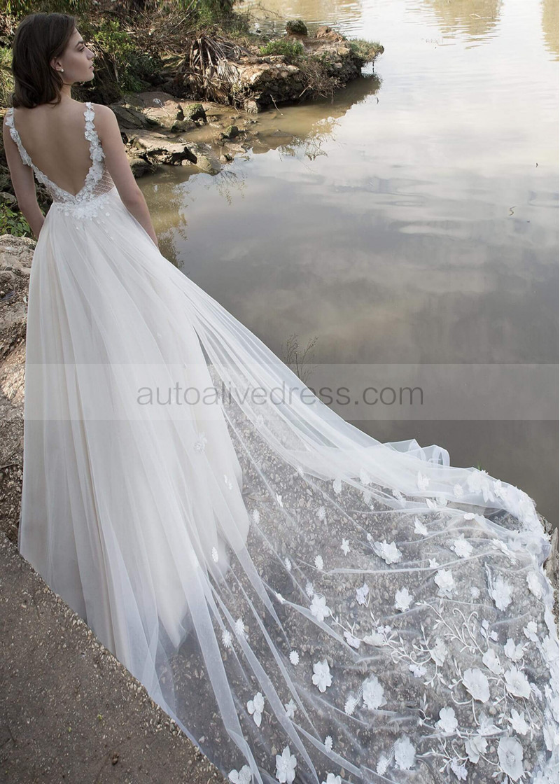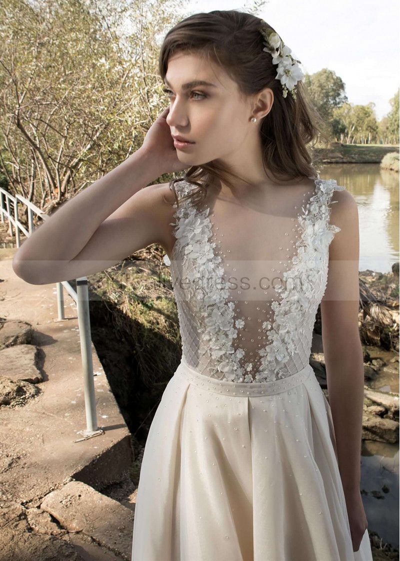 Beaded Ivory Organza Wedding Dress With Detachable Train