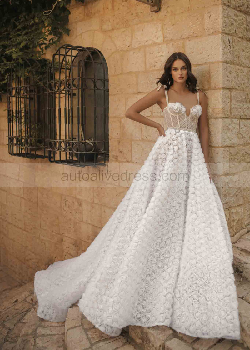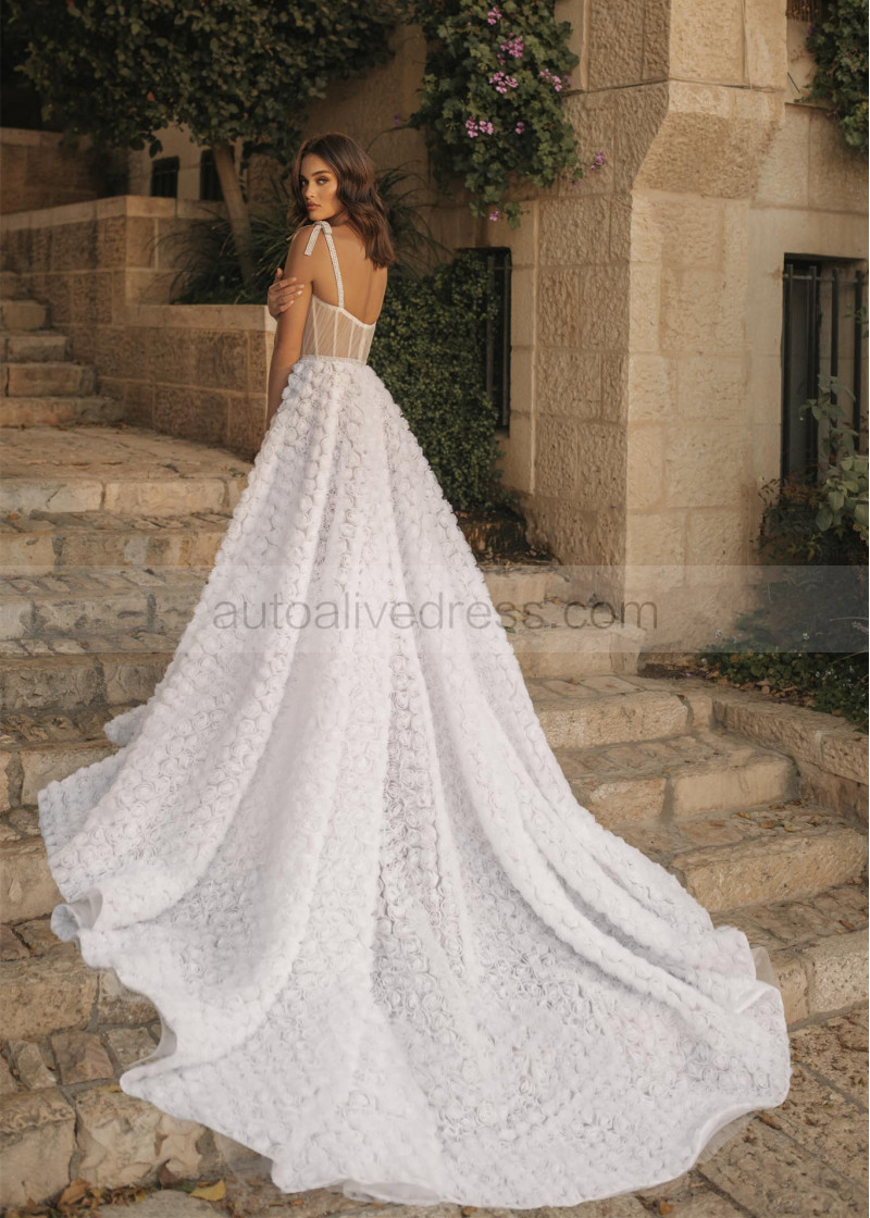 Beaded Ivory Rosette Tulle Romantic Wedding Dress