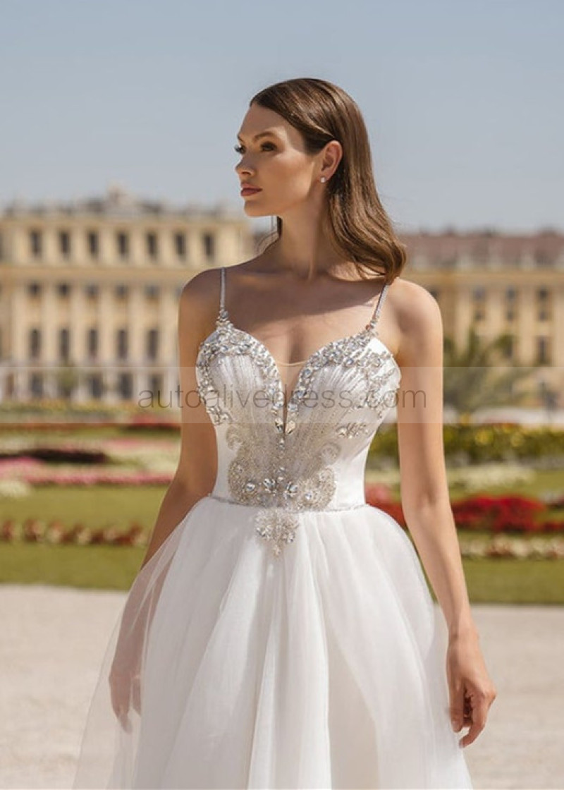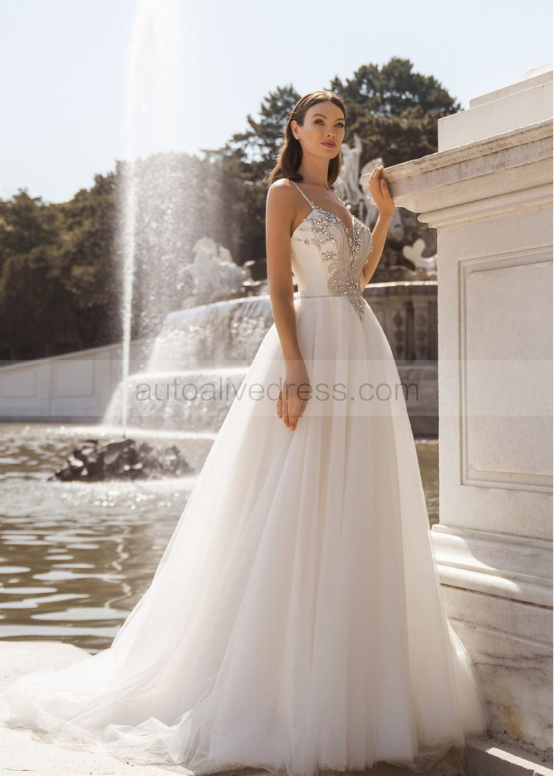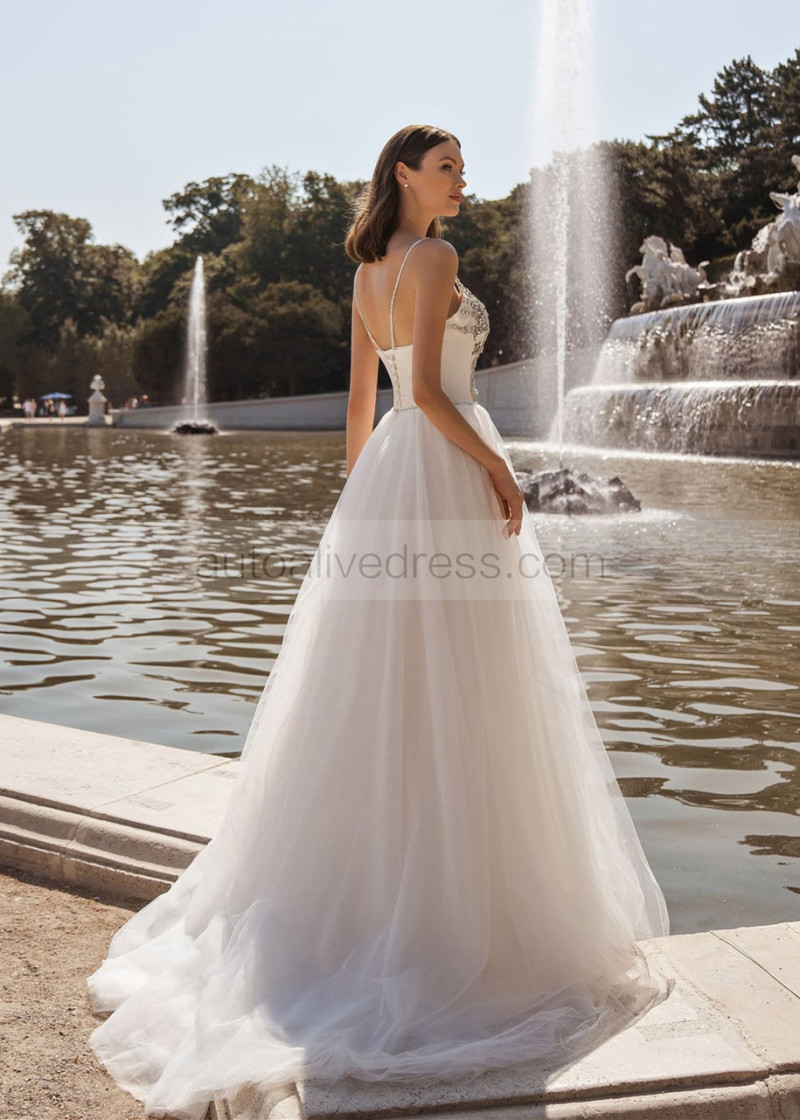Beaded Ivory Tulle Lace-up Back Wedding Dress