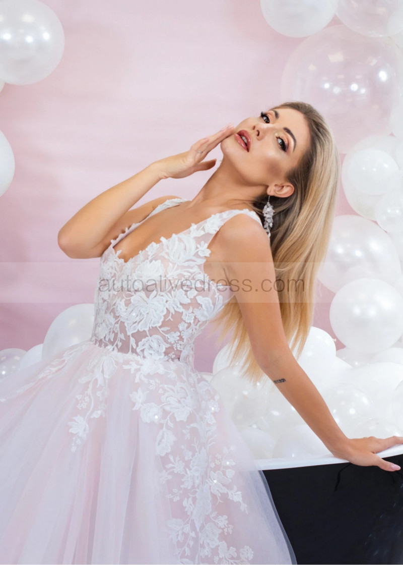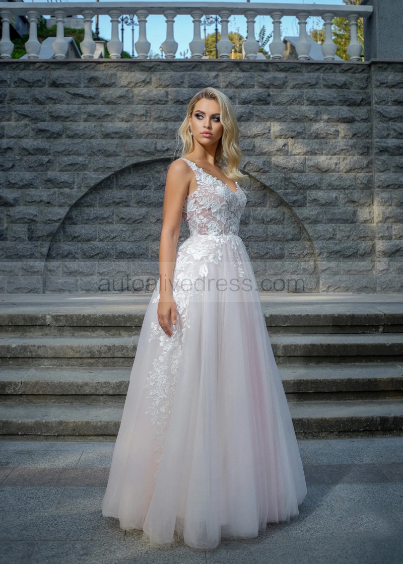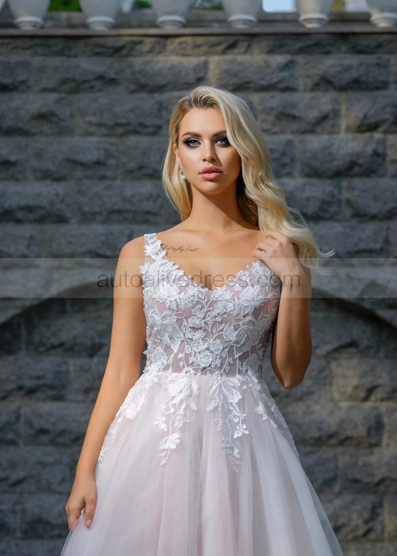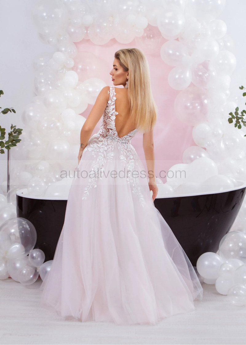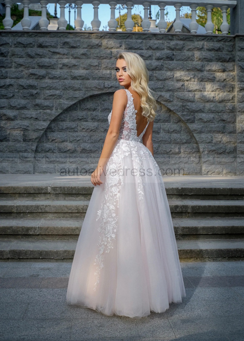 Beaded Lace Tulle Deep V Back Sexy Wedding Dress