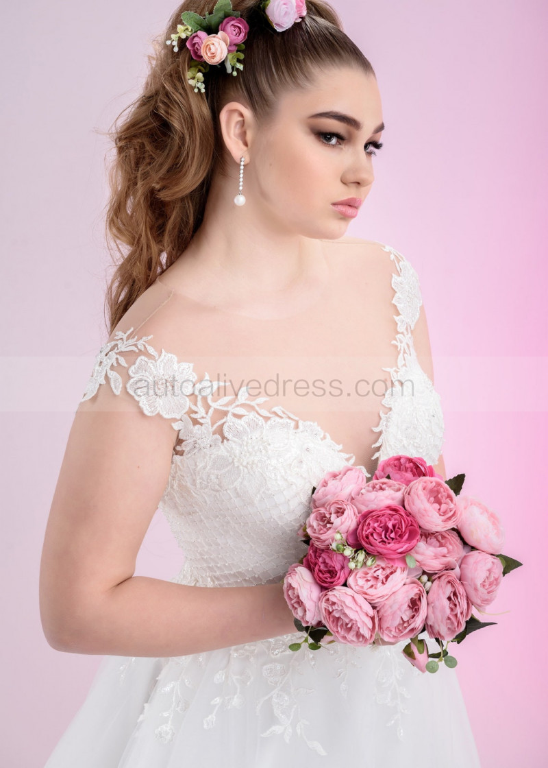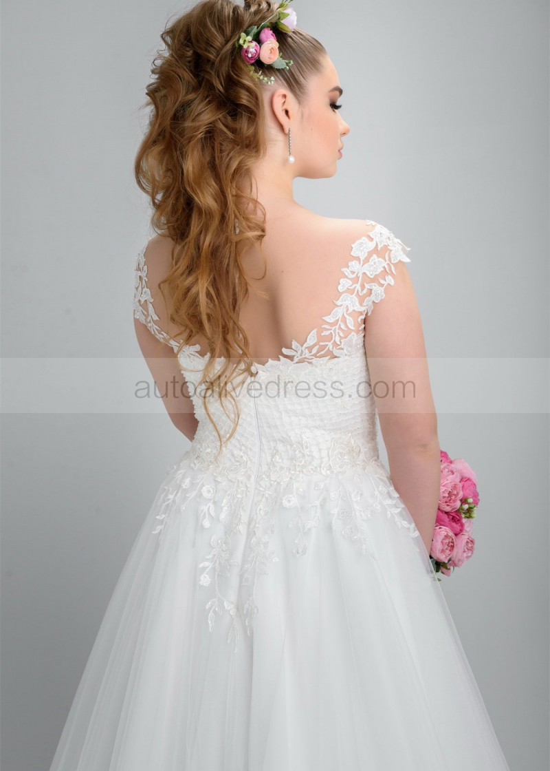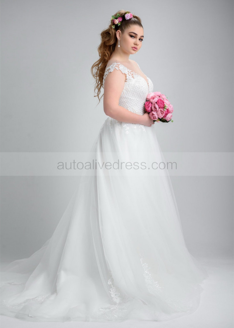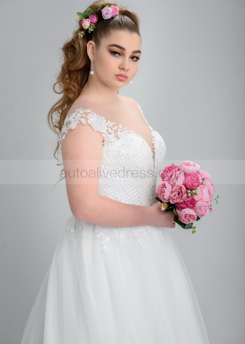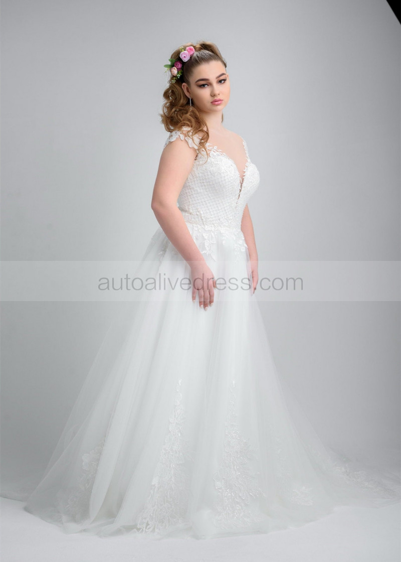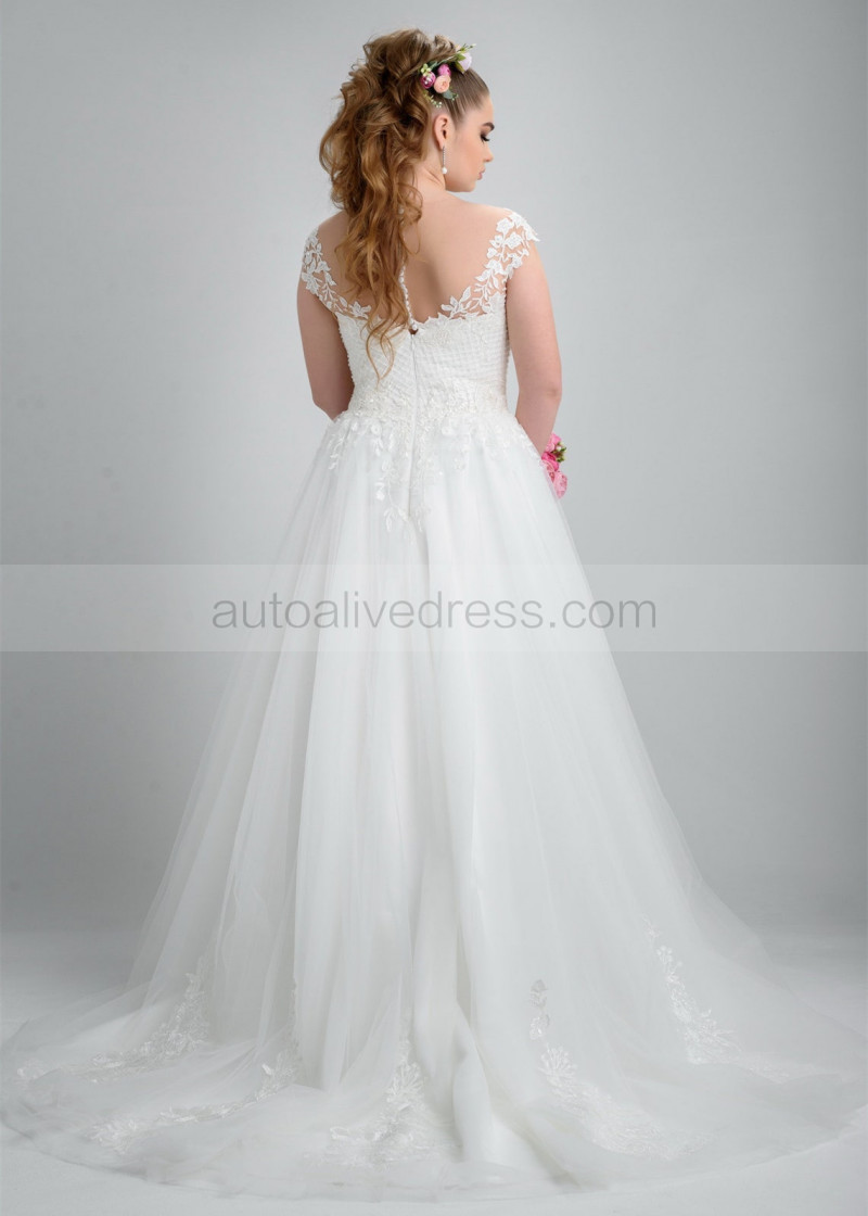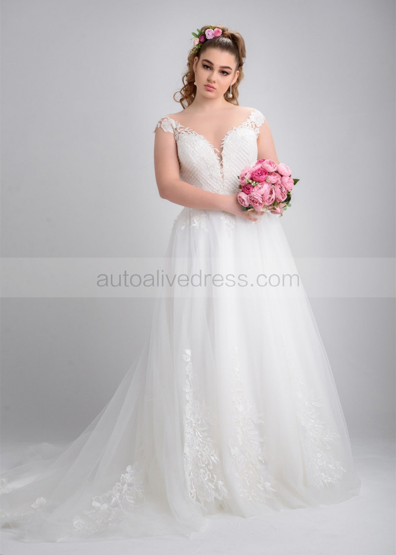 Beaded Lace Tulle Plus Size Ivory Wedding Dress