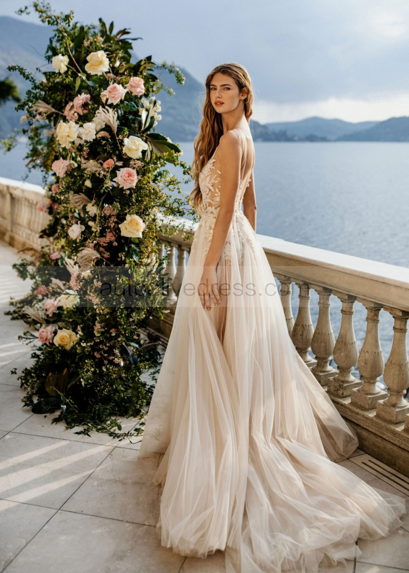 Beaded Lace Tulle Sexy Boho Beach Wedding Dress