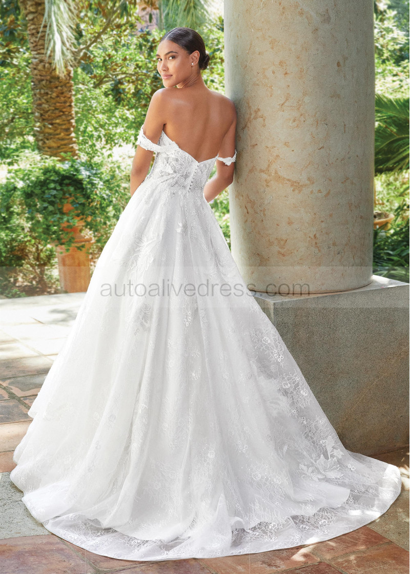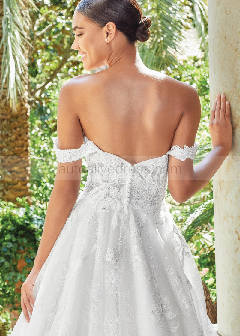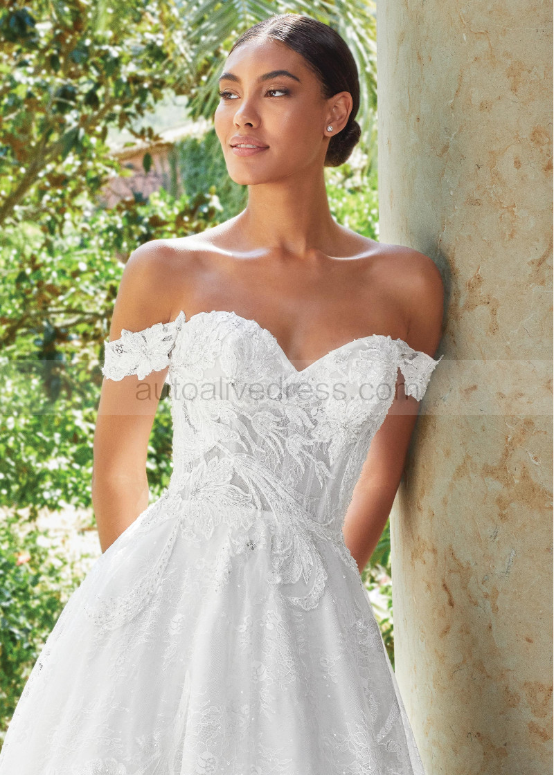 Beaded Off Shoulder Ivory Lace Romantic Wedding Dress
