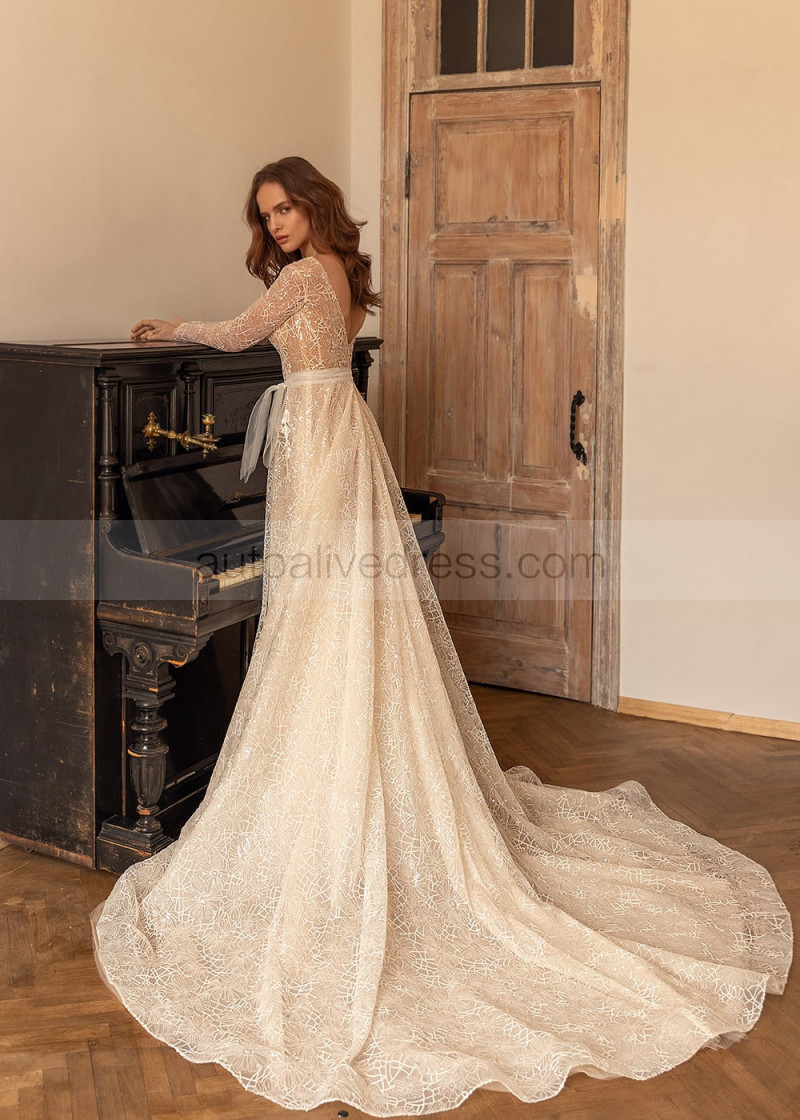 Beaded Sexy Shining Lace Tulle High Slit Wedding Dress
