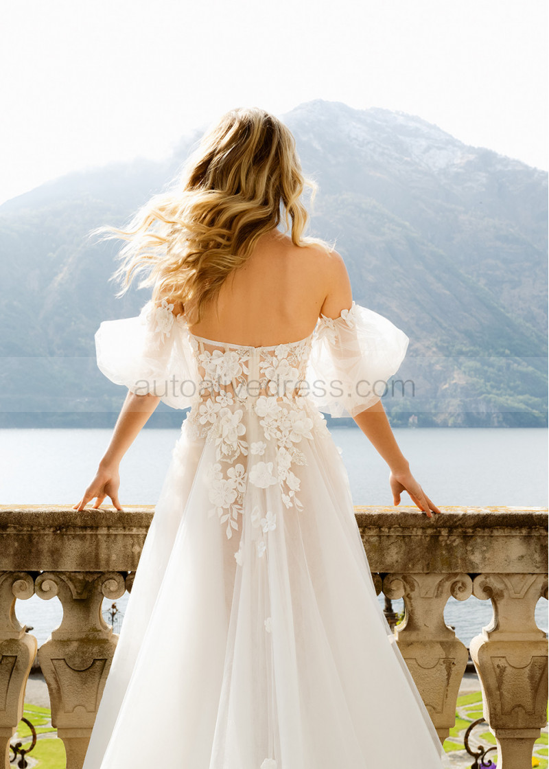 Beaded Strapless Ivory Floral Lace Tulle Wedding Dress