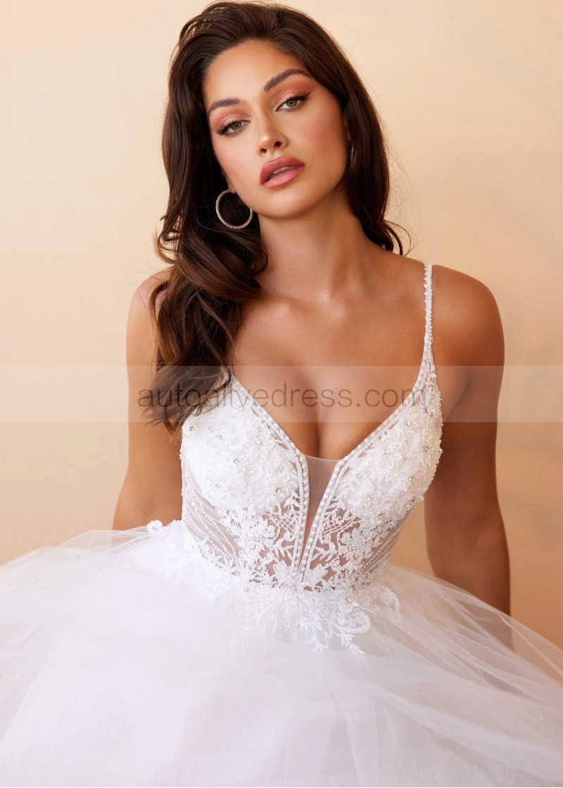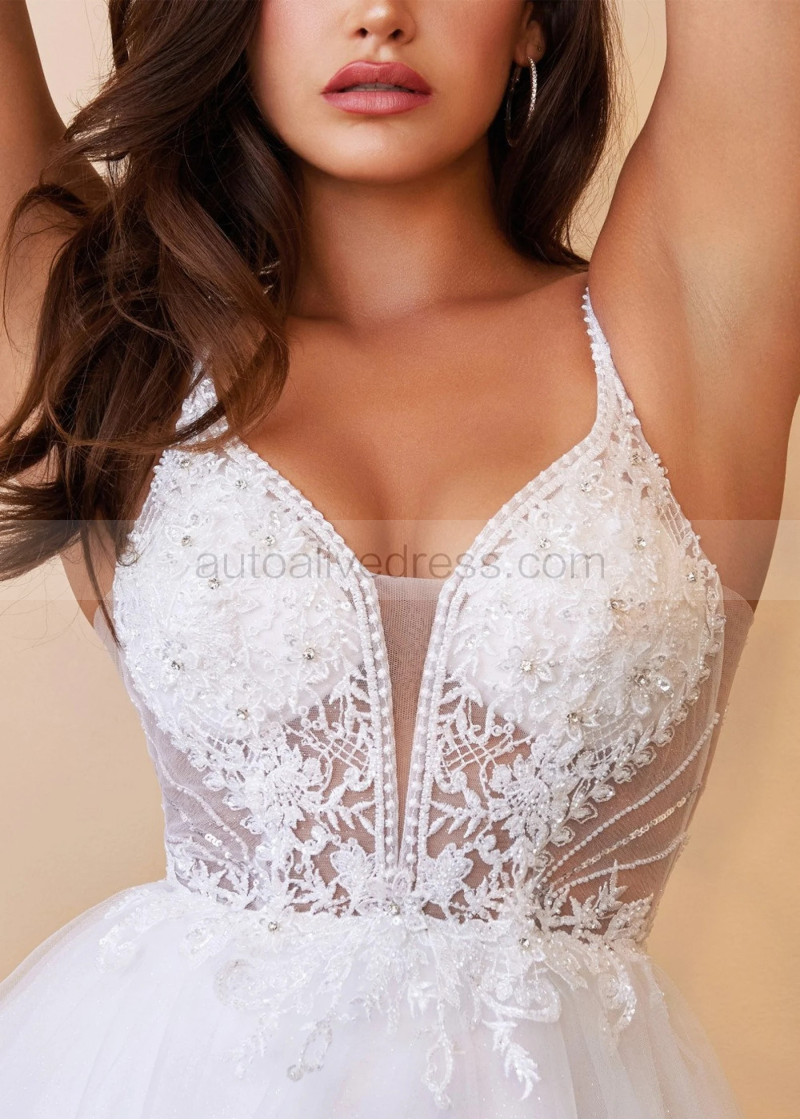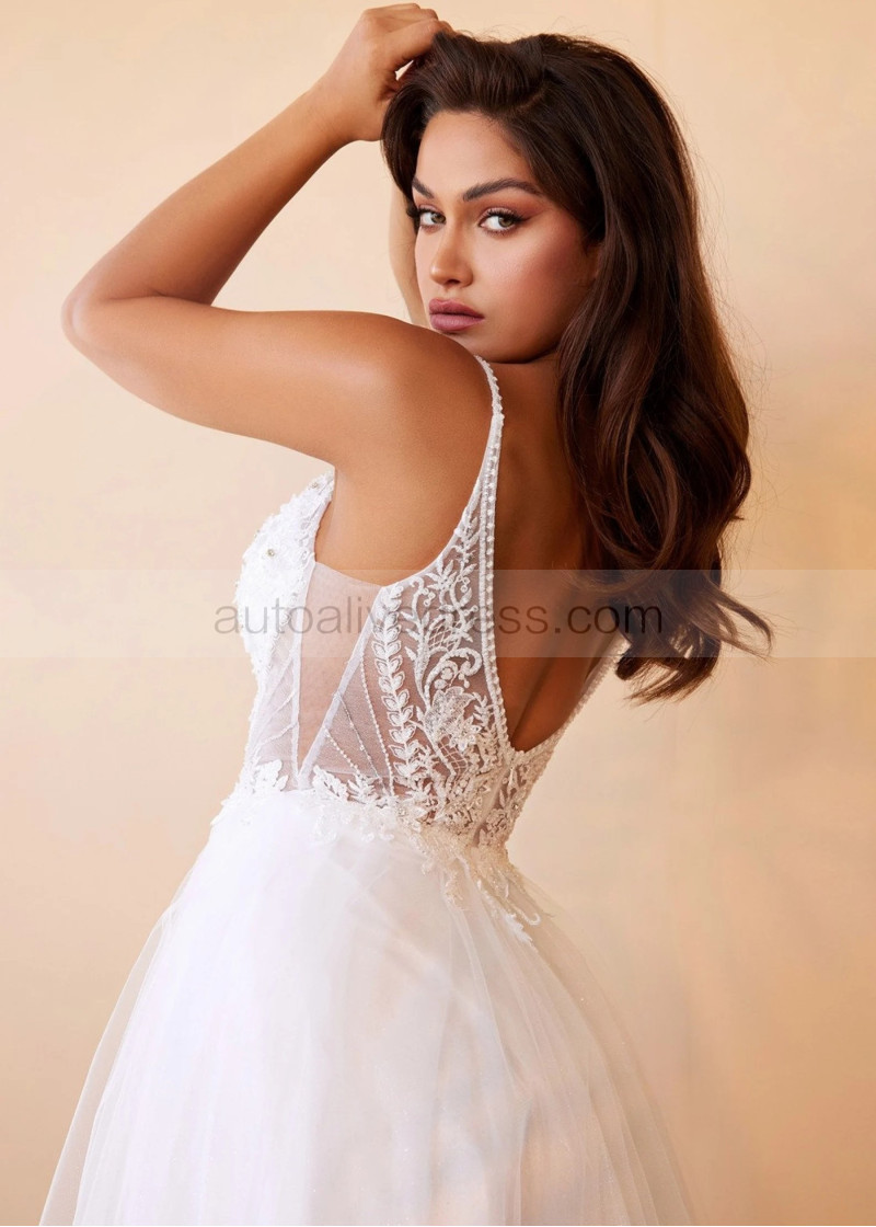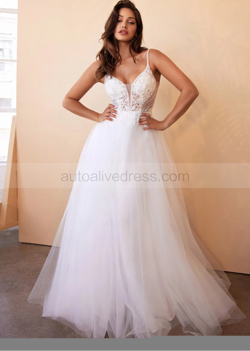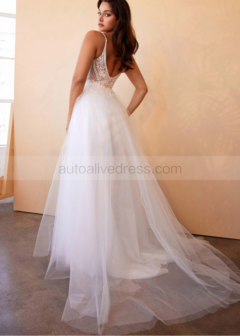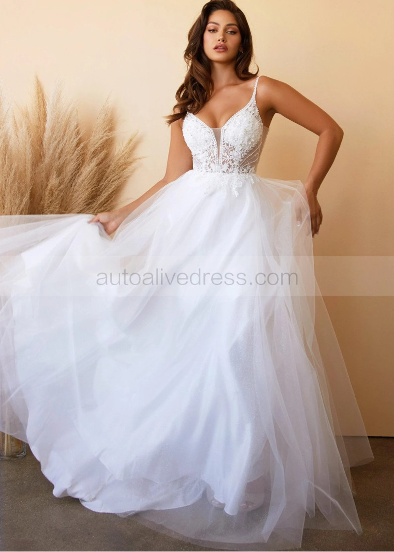 Beaded White Lace Tulle Shimmering Wedding Dress
