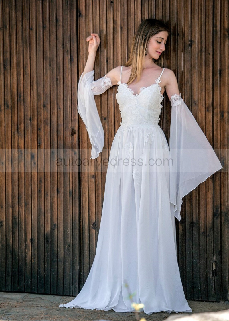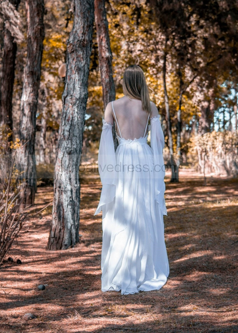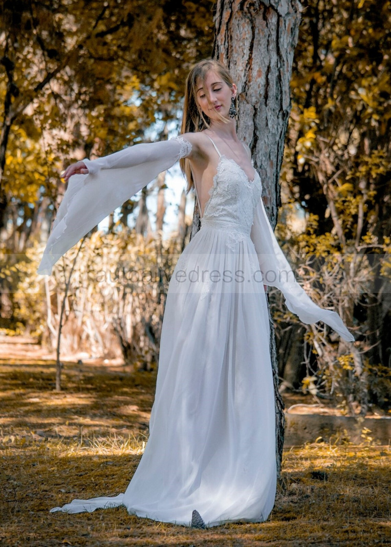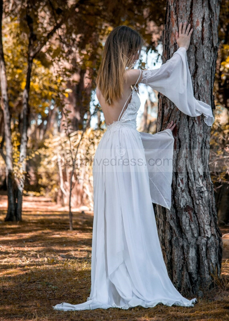 Bell Sleeves Ivory Lace Chiffon Beach Summer Wedding Dress