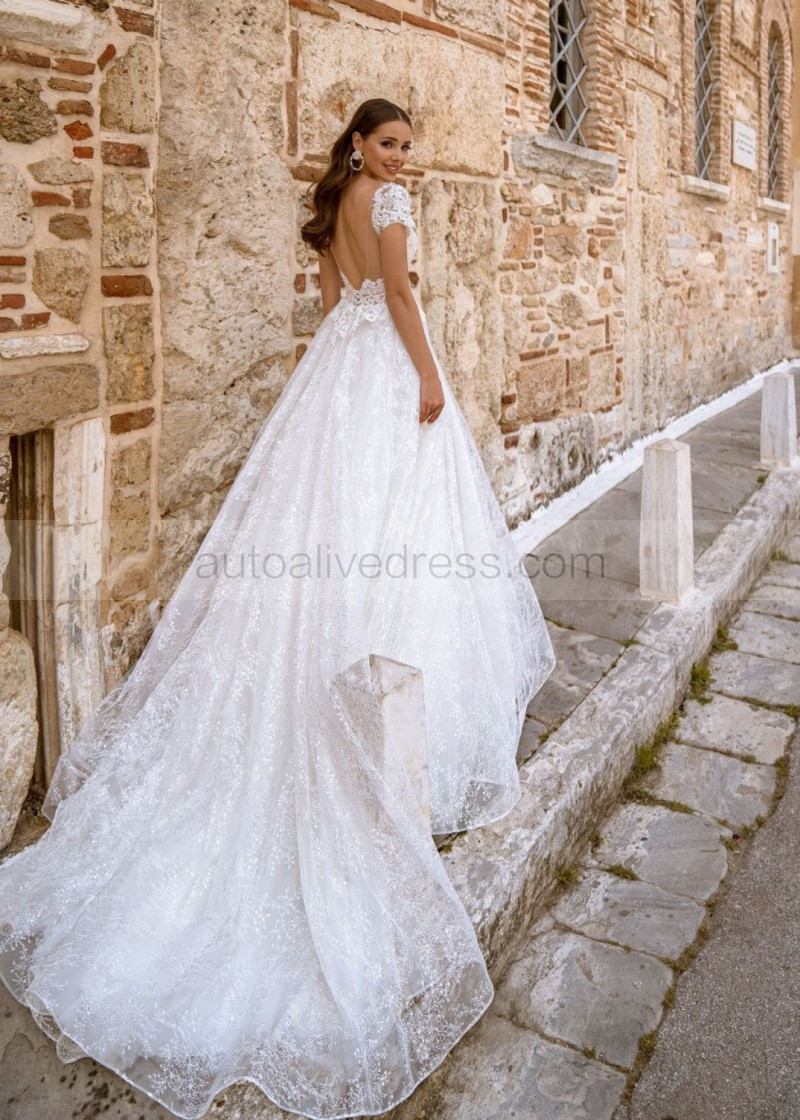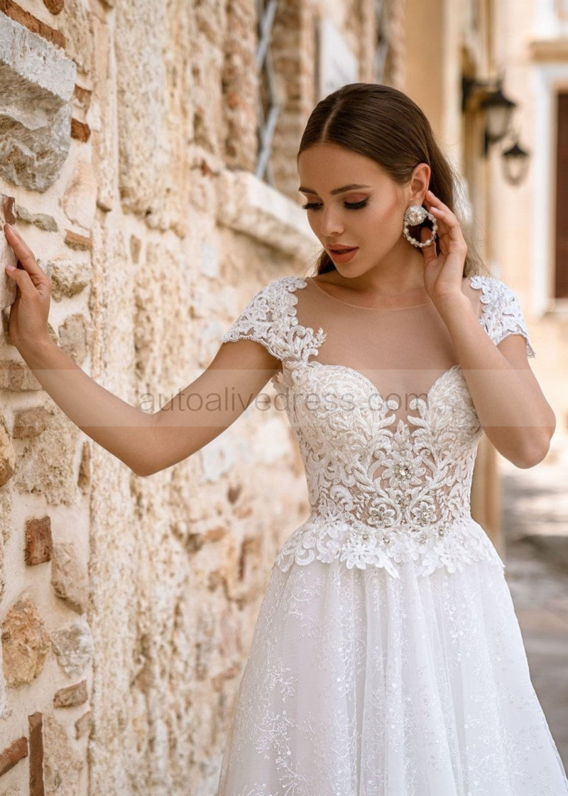 Cap Sleeve Beaded Ivory Lace Wedding Dress