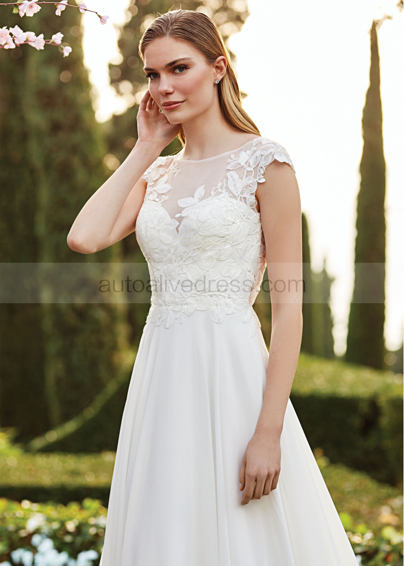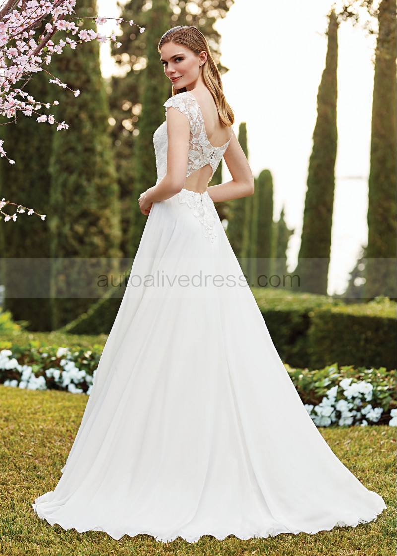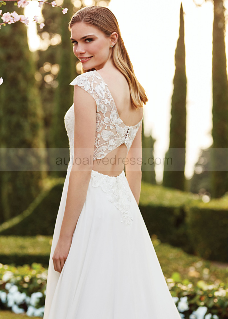 Cap Sleeve Ivory Lace Chiffon Butterfly Back Wedding Dress