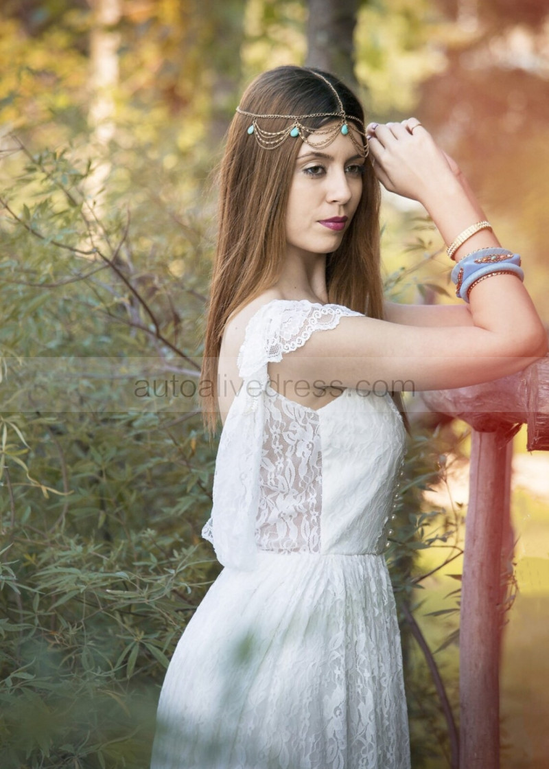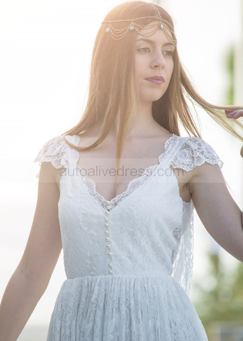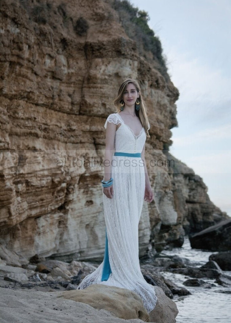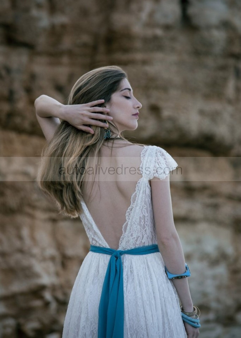 Cap Sleeves Ivory Lace Backless Stunning Wedding Dress