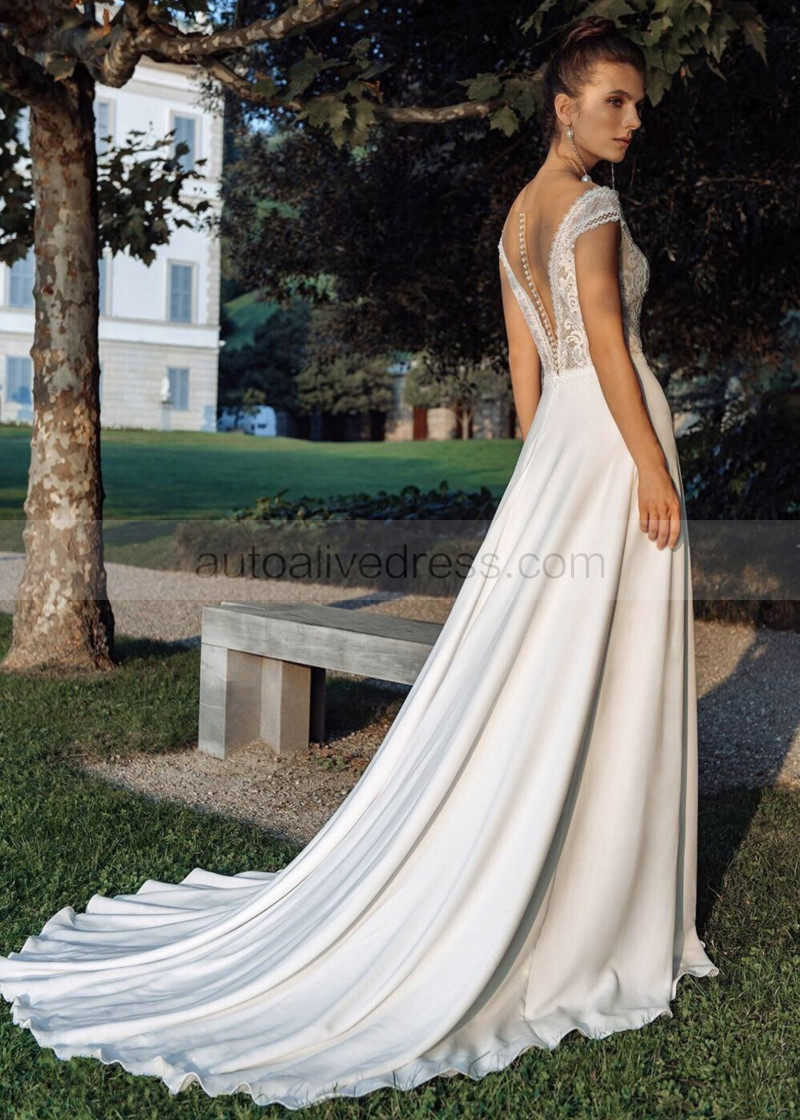 Cap Sleeves Ivory Lace Chiffon Boho Beach Wedding Dress
