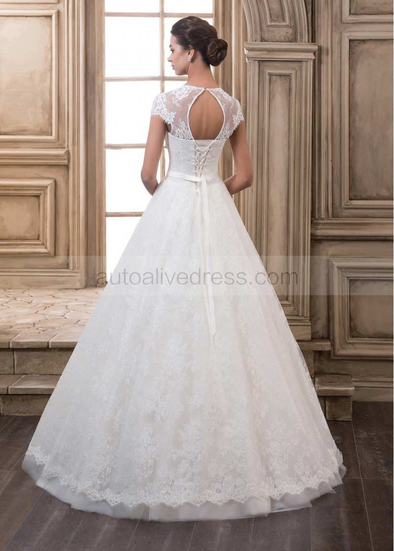 Cap Sleeves Lace Tulle Beaded Wedding Dress Wedding Gown