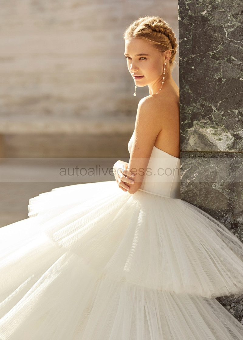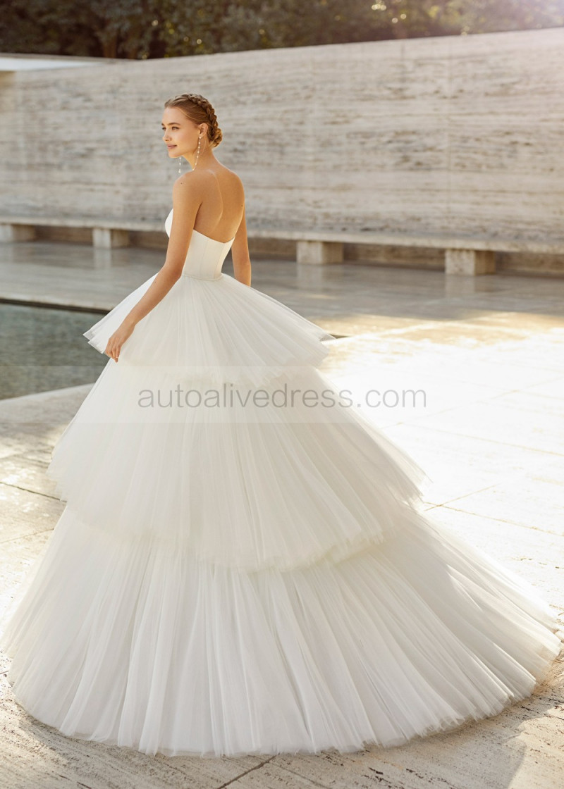 Chic Strapless Satin Pleated Tulle Layered Wedding Dress