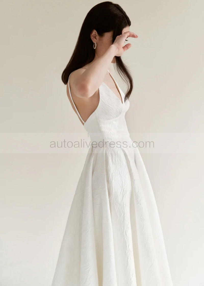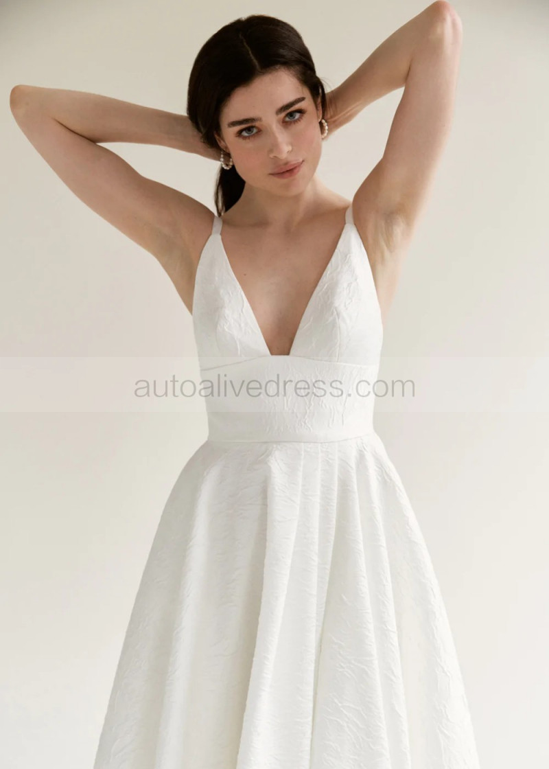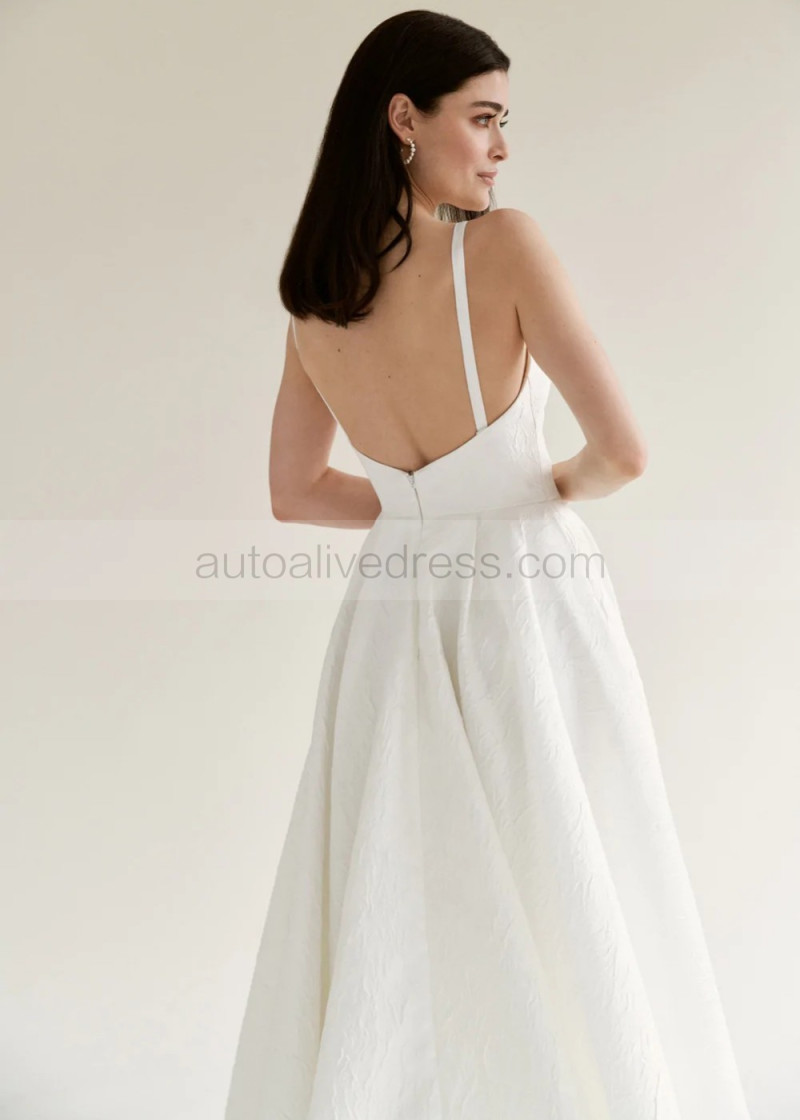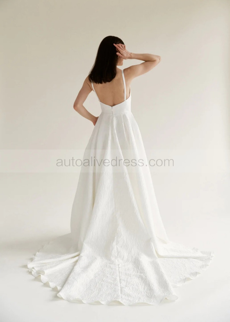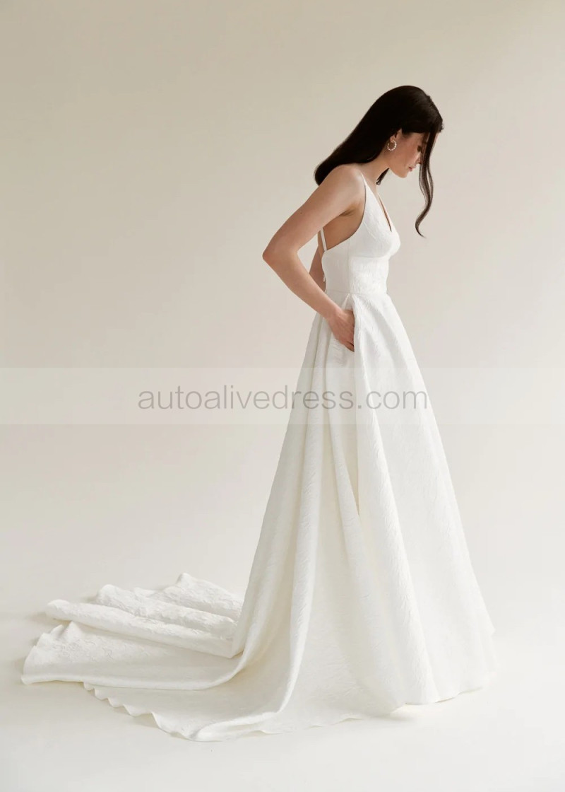 Classic Ivory Jacquard Side Slit Wedding Dress With Pockets