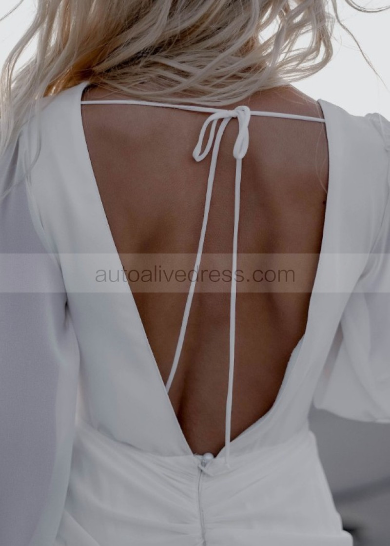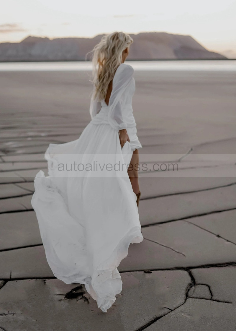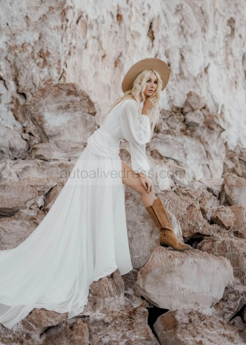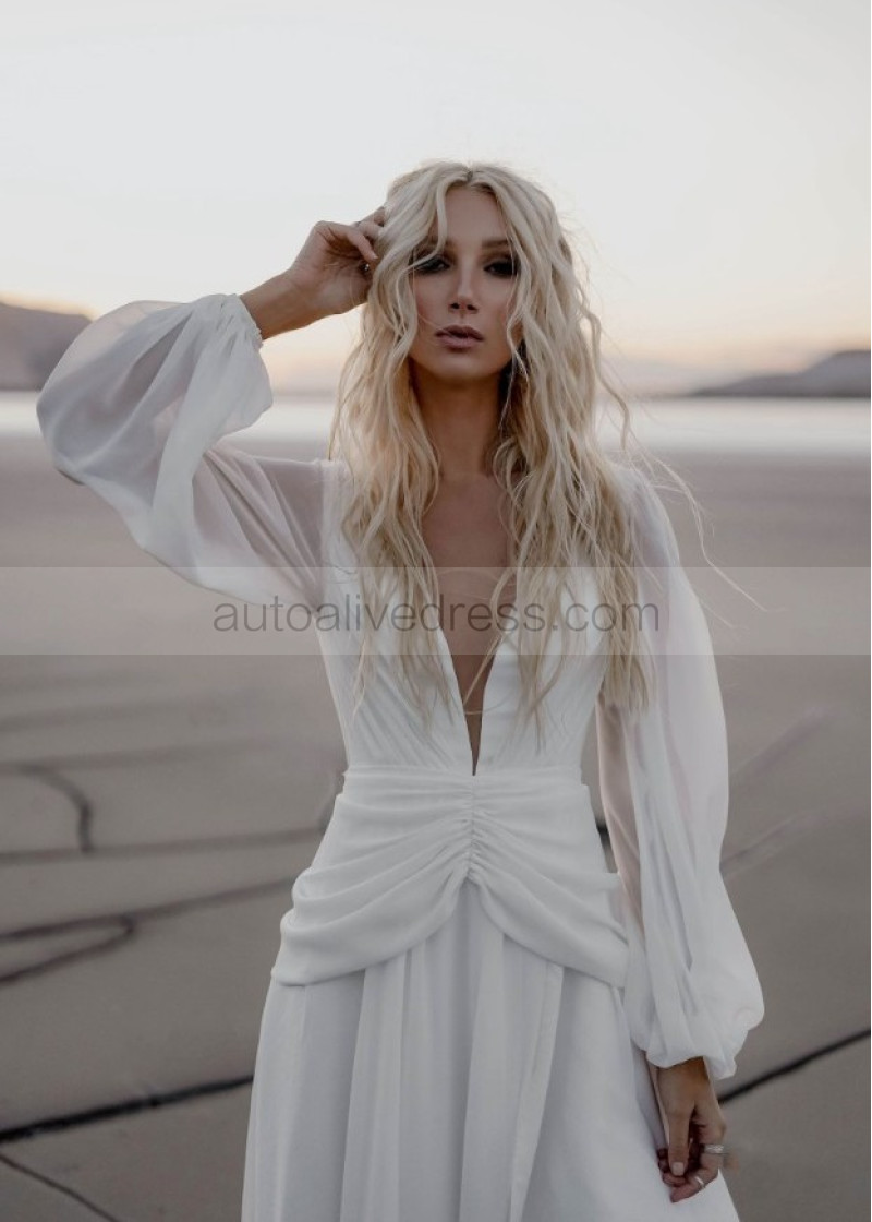 Deep V Neck Ivory Chiffon Slit Wedding Dress