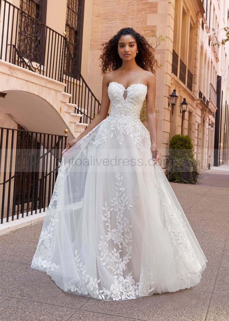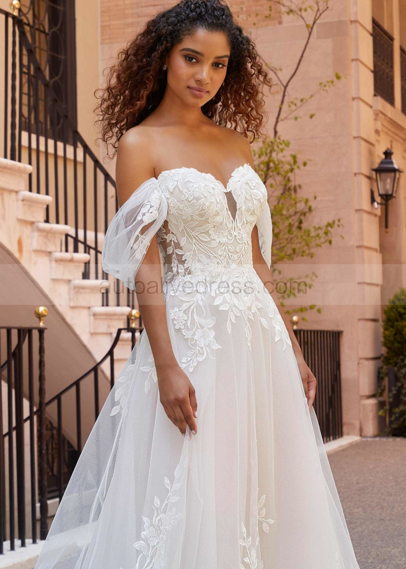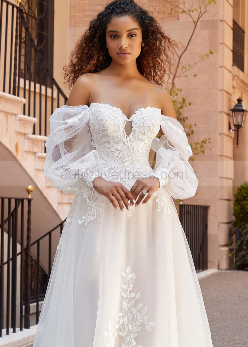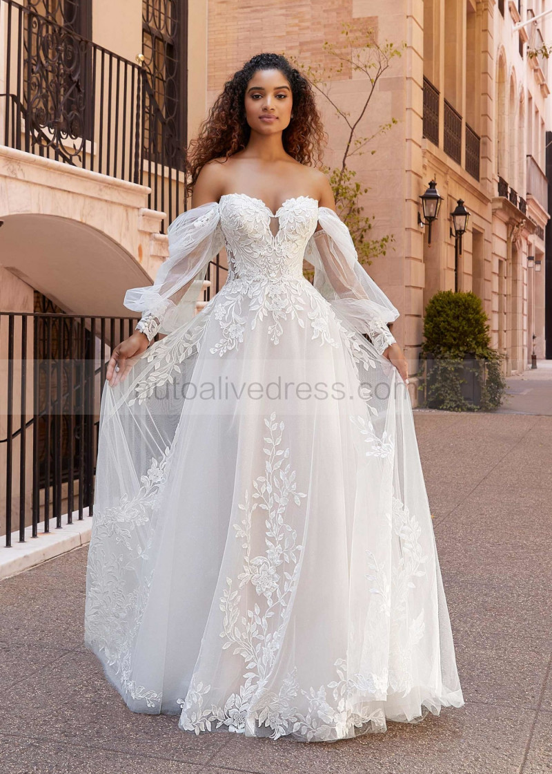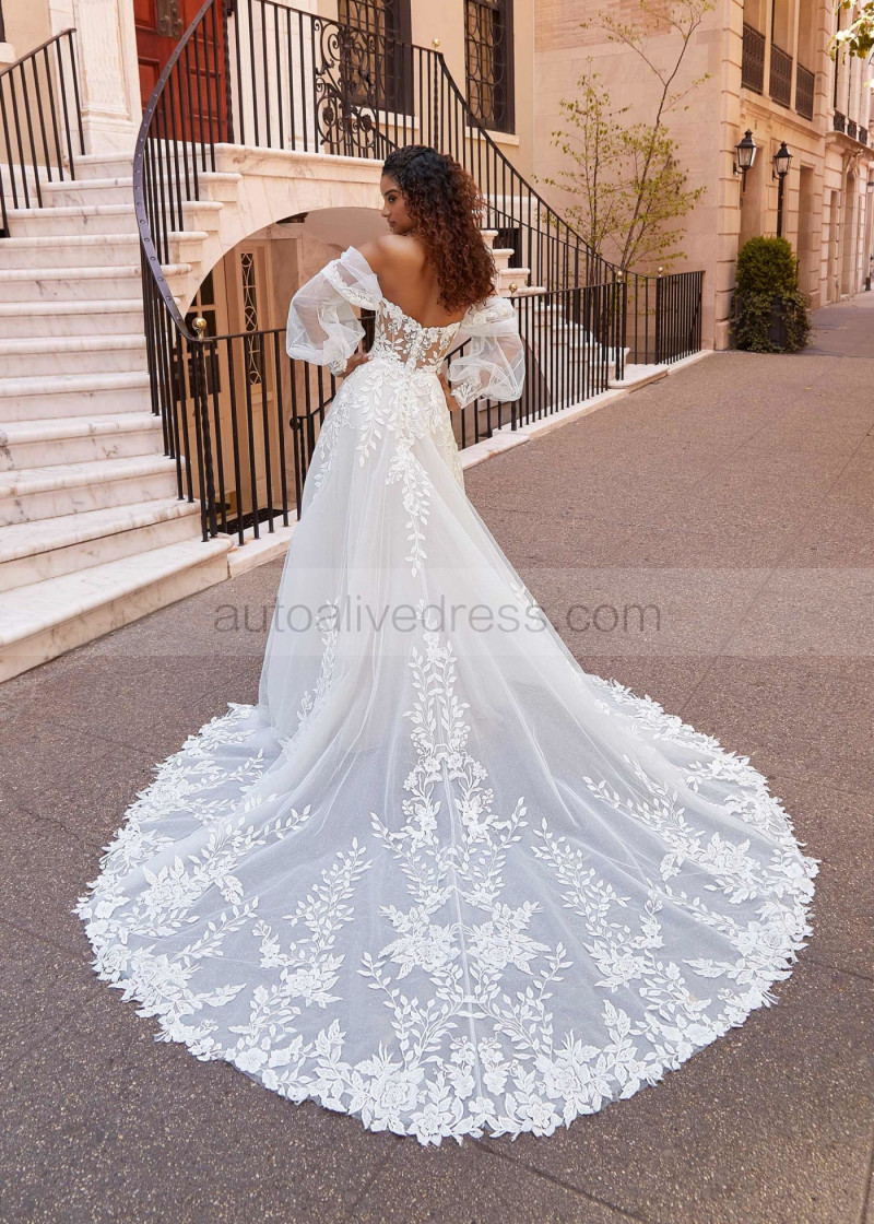 Detachable Sleeves Ivory Lace Tulle Unique Wedding Dress