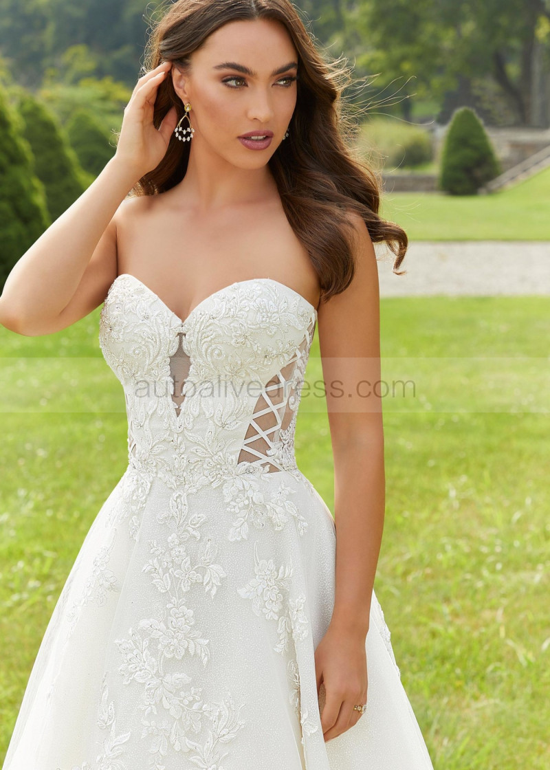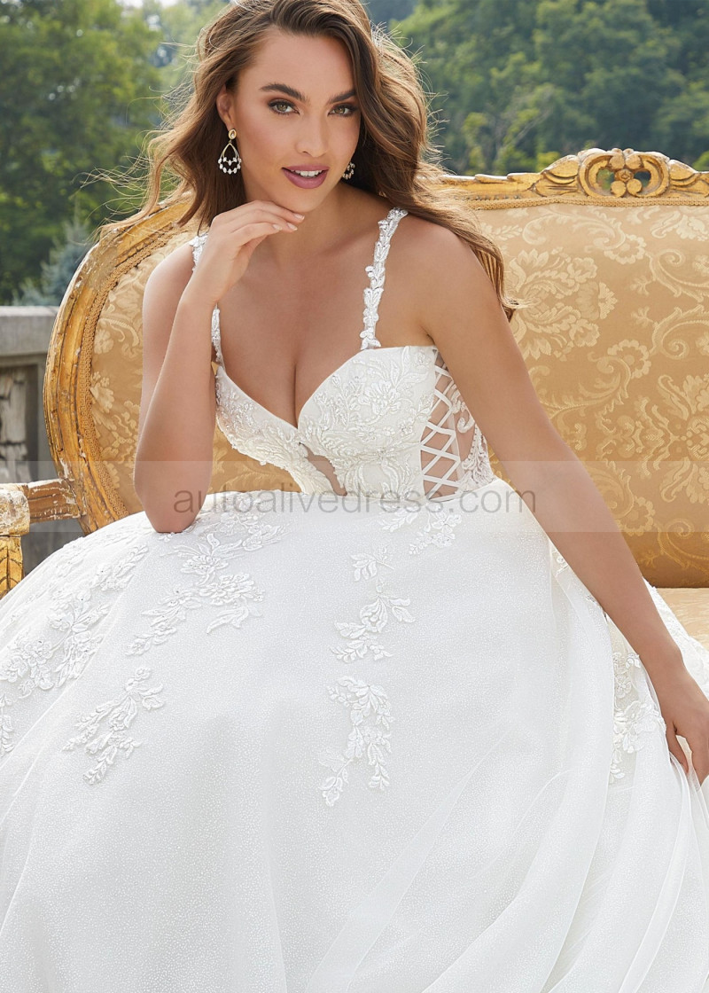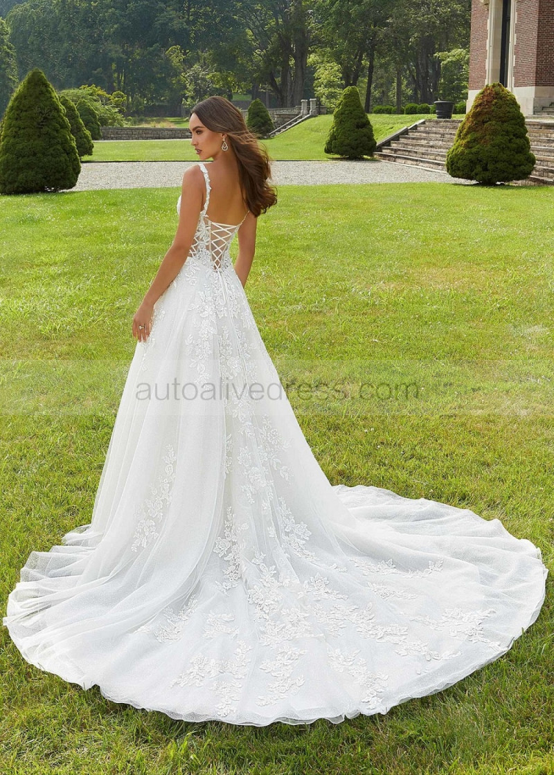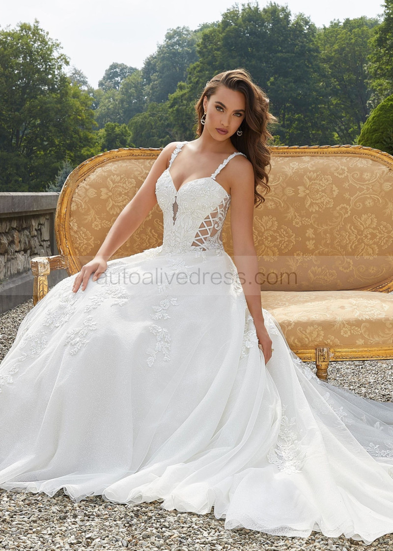 Detachable Straps Beaded Ivory Lace Tulle Timeless Wedding Dress