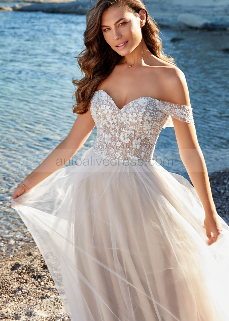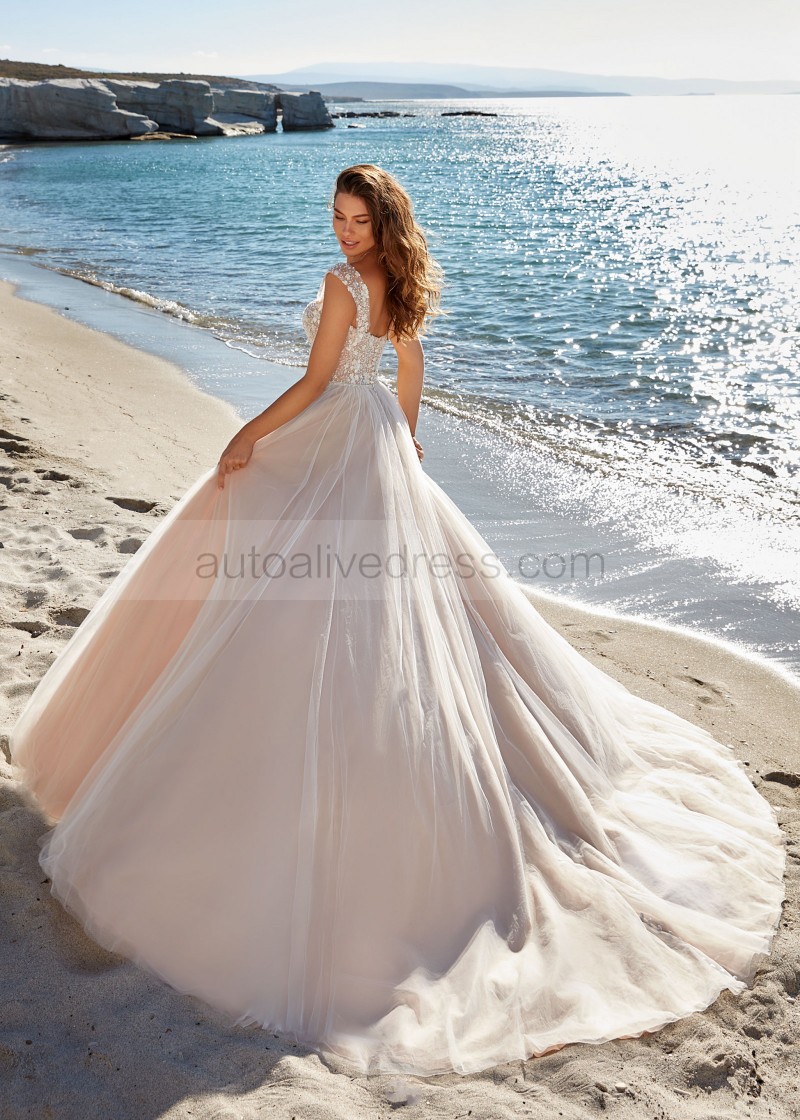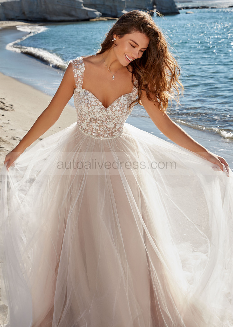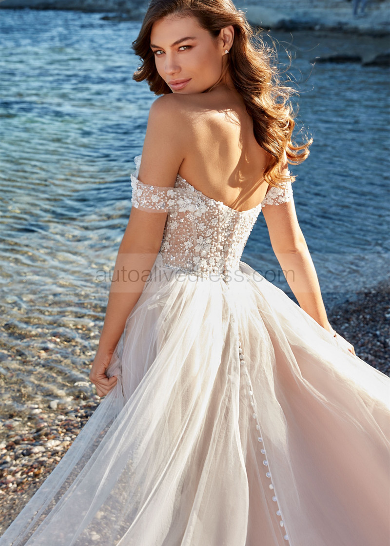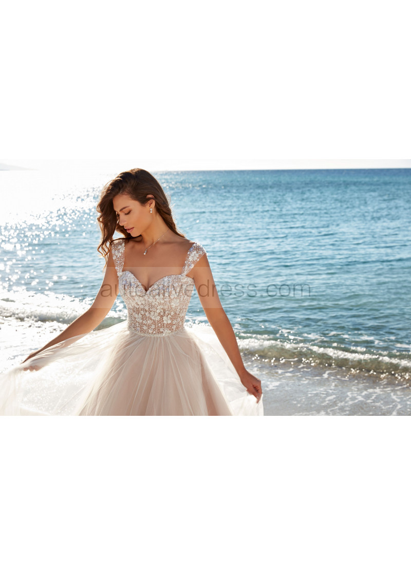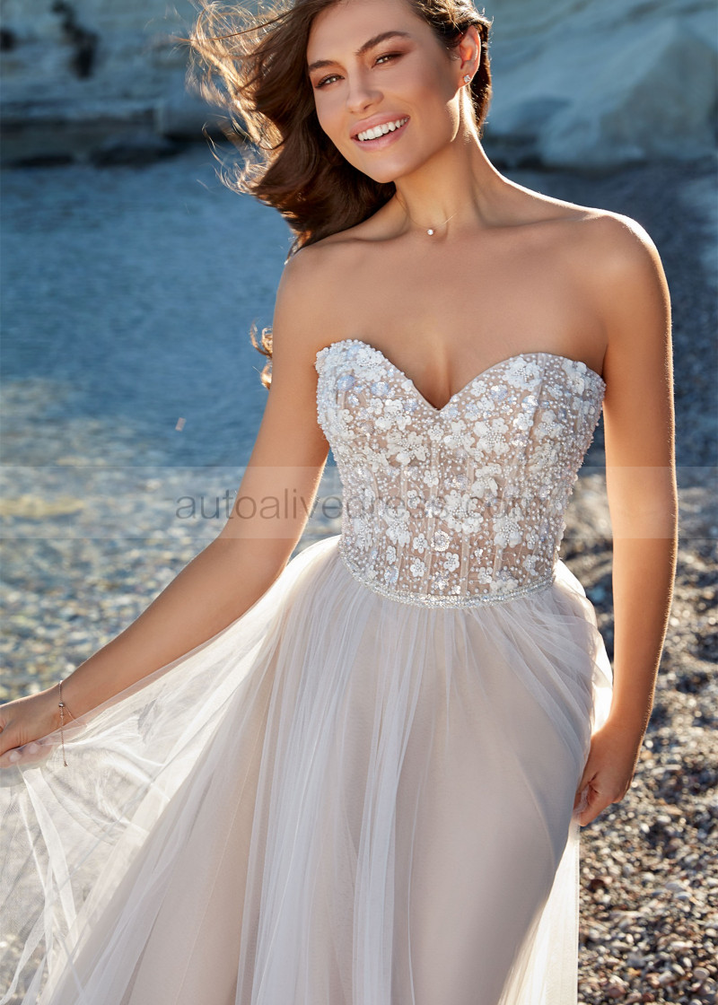 Detachable Straps Beaded Sequins Pearls Most Beautiful Wedding Dress