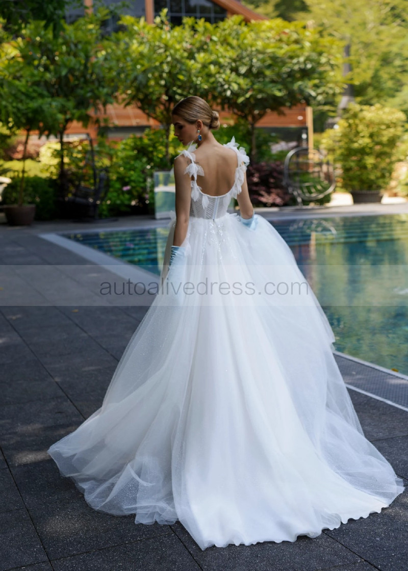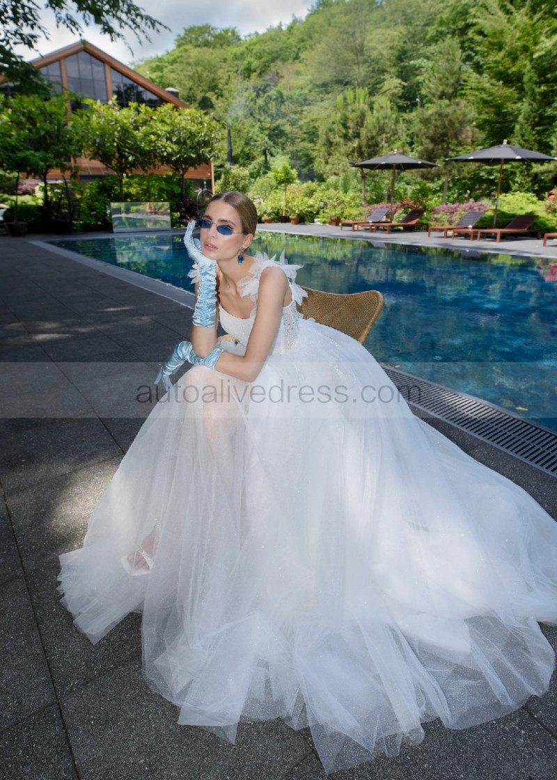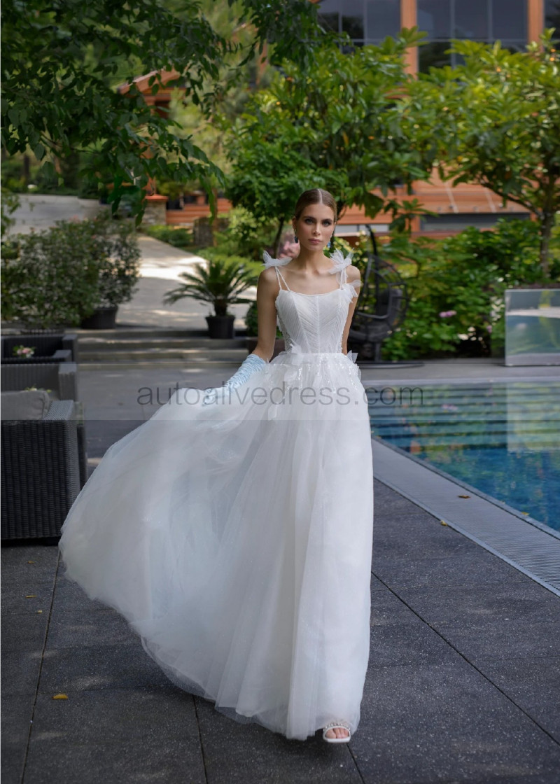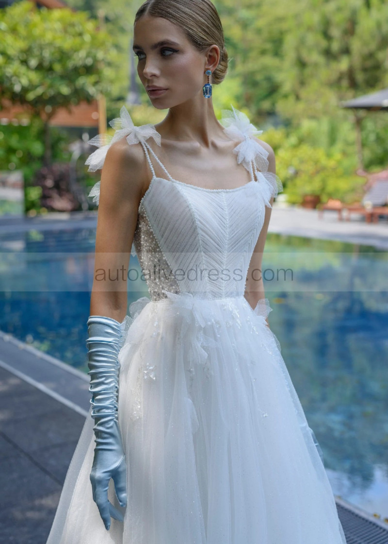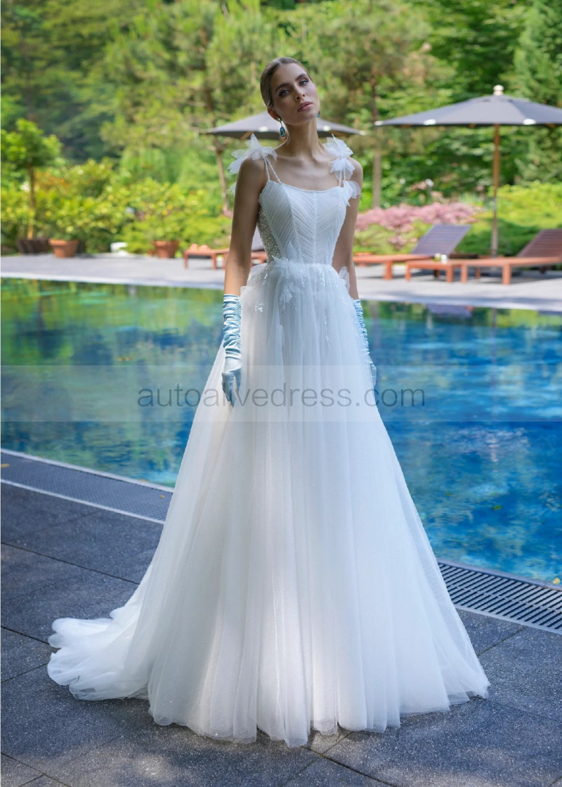 Double Straps Beaded Ivory Glitter Tulle Wedding Dress