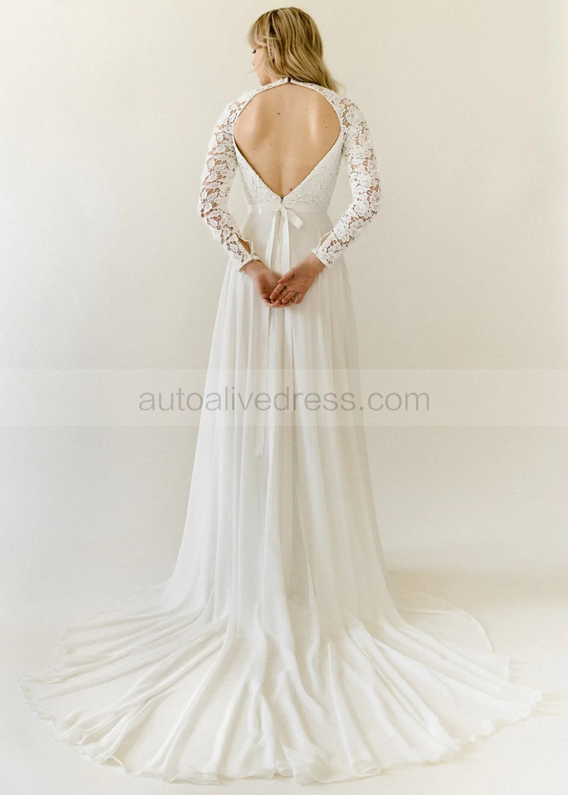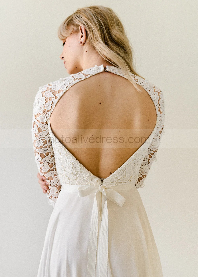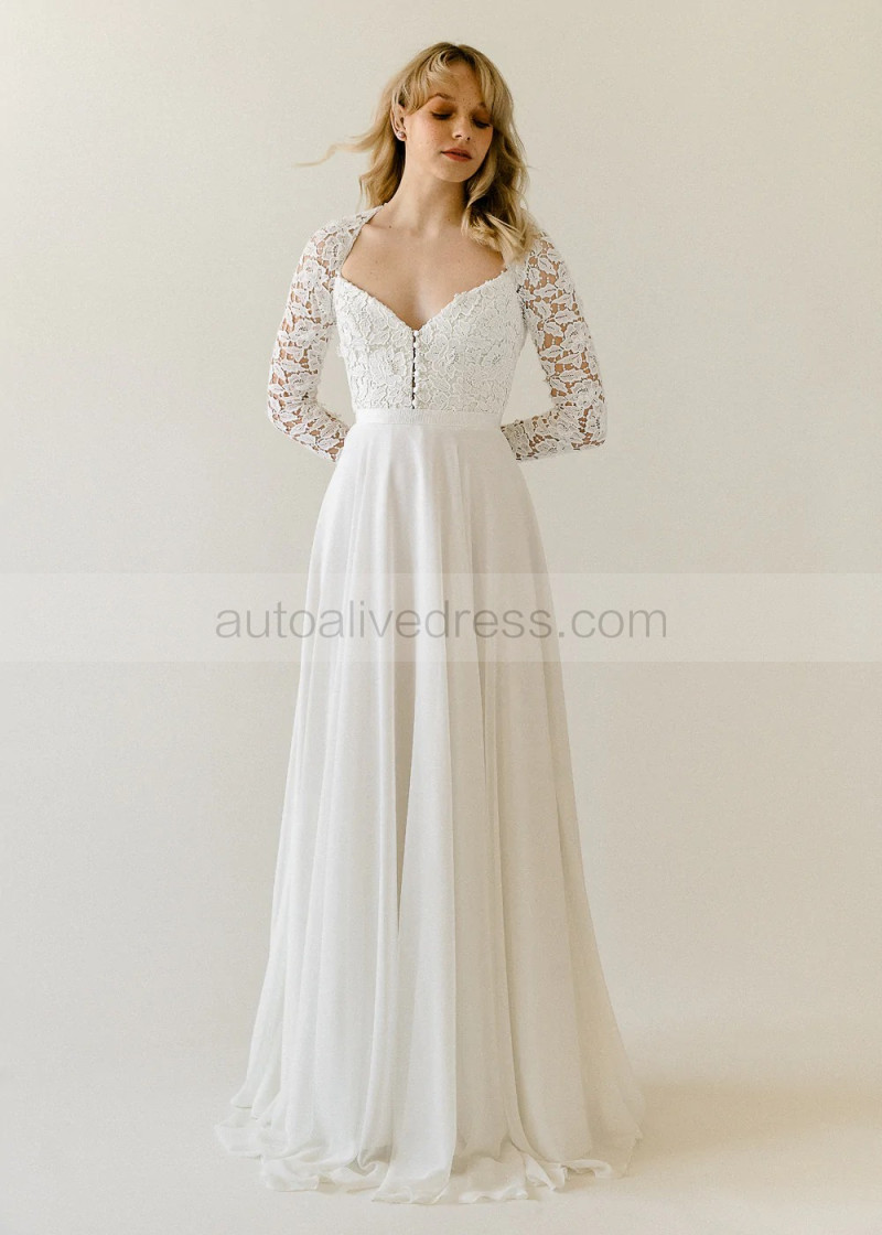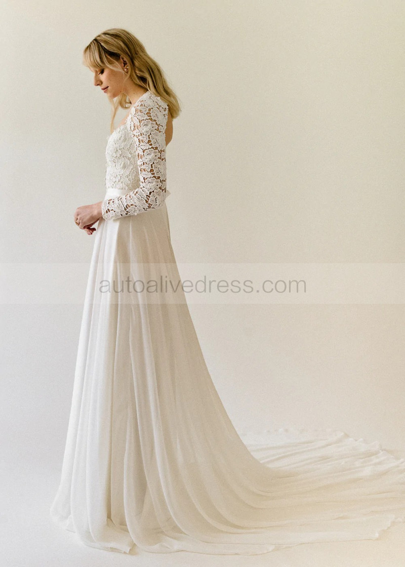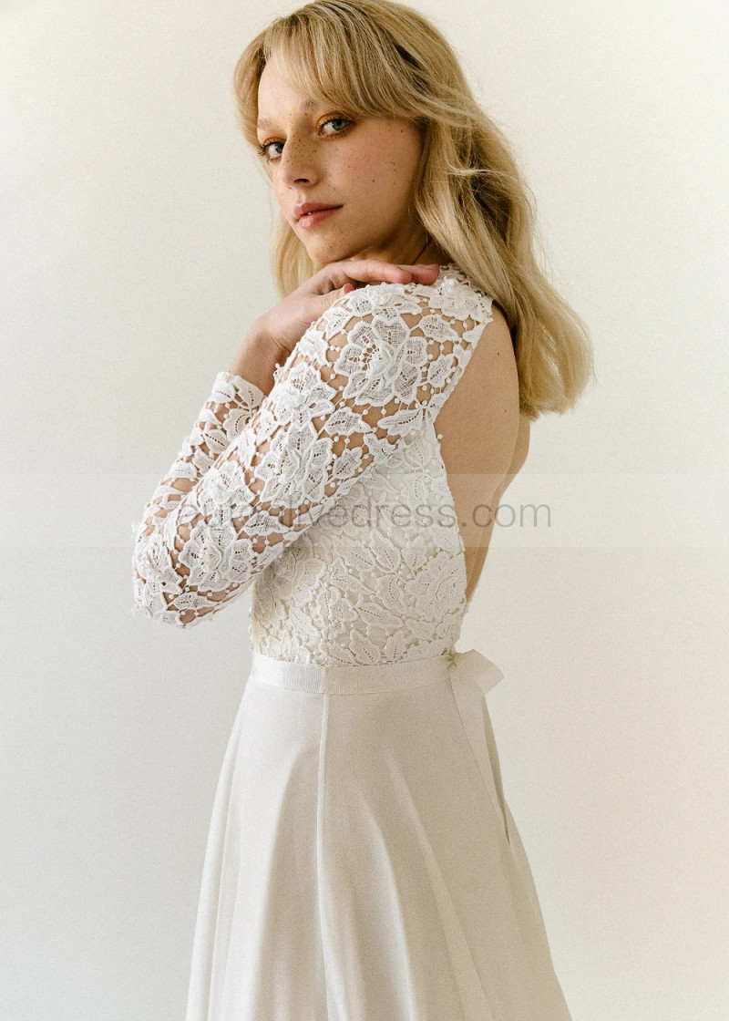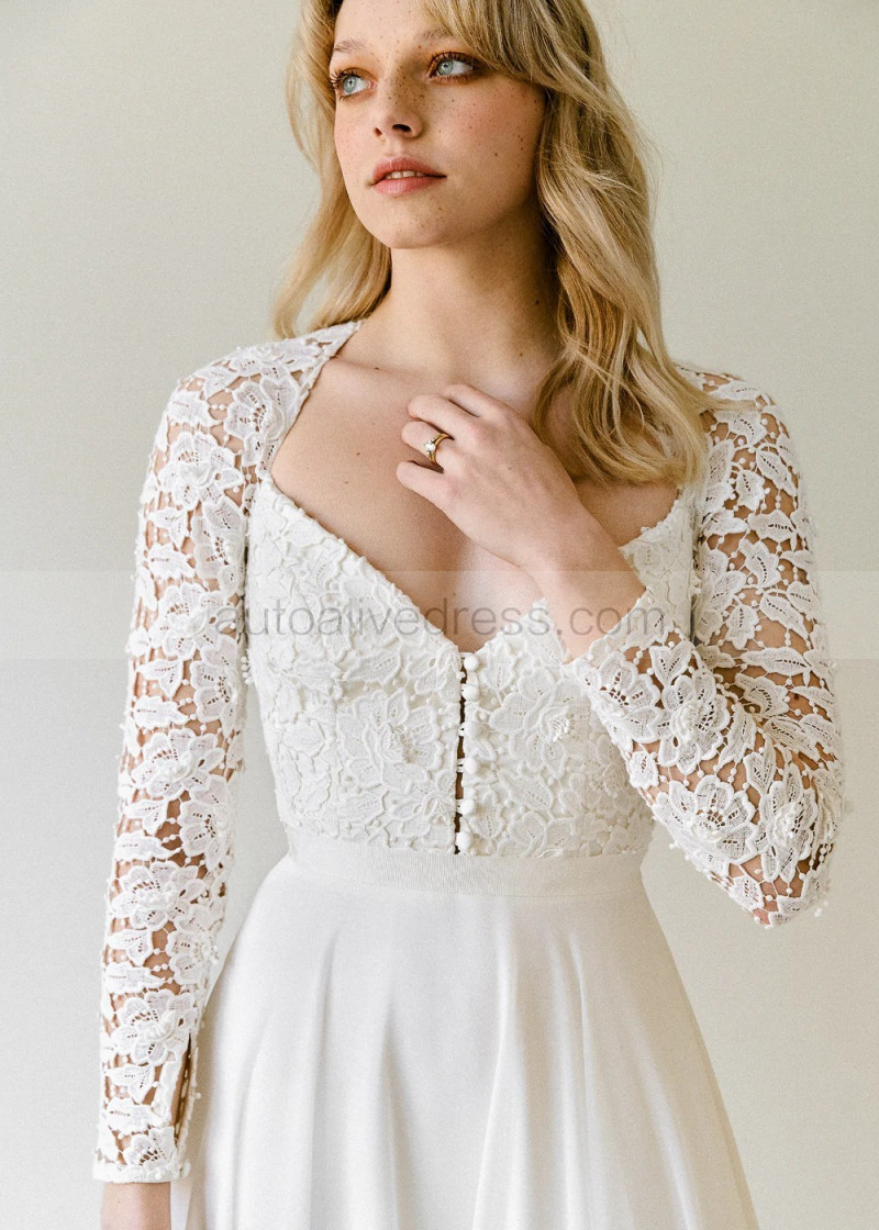 Fitted Sleeves Ivory Lace Tulle Modern Wedding Dress