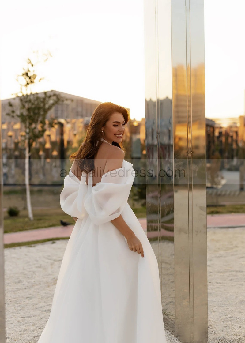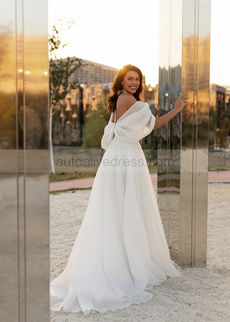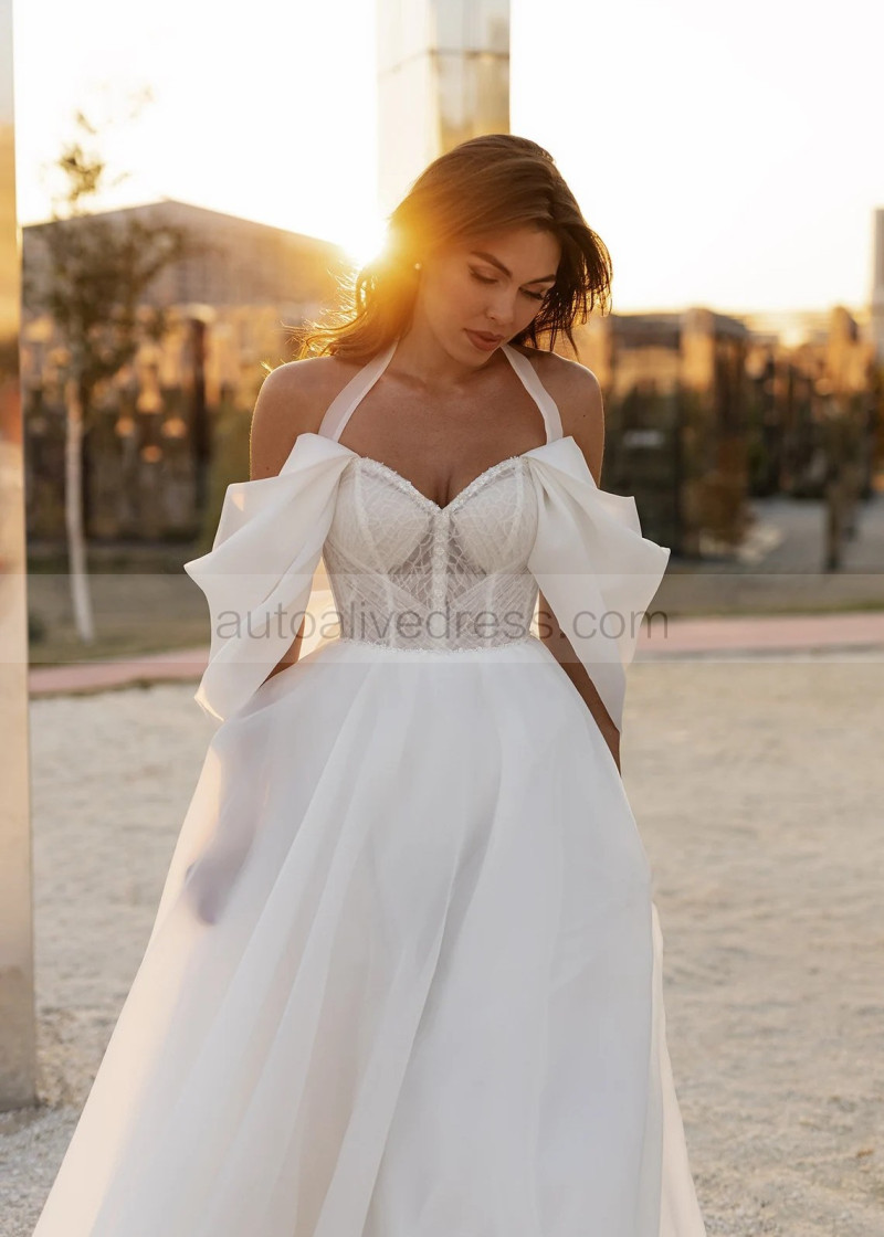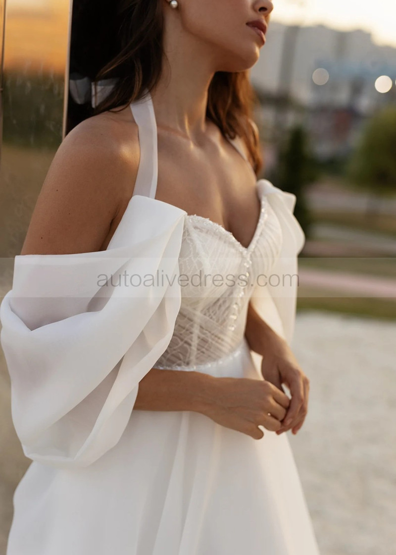 Halter Neck Beaded Ivory Lace Organza Sexy Wedding Dress