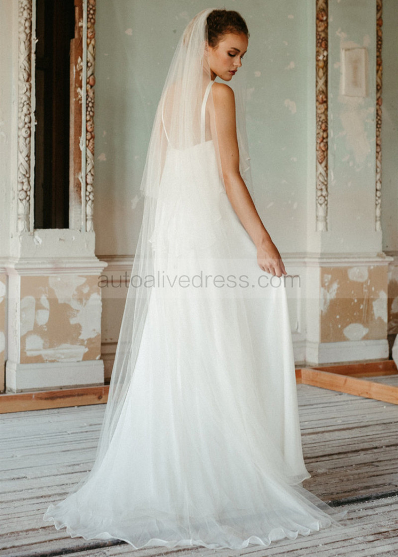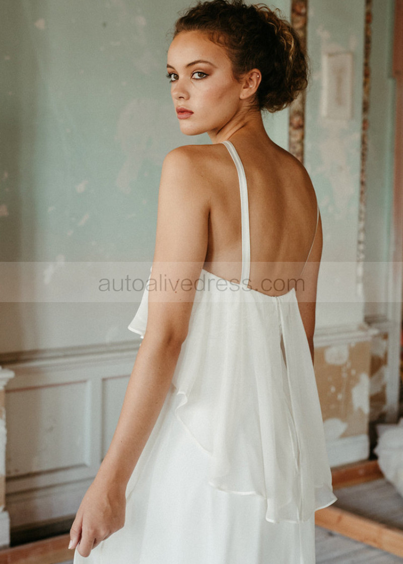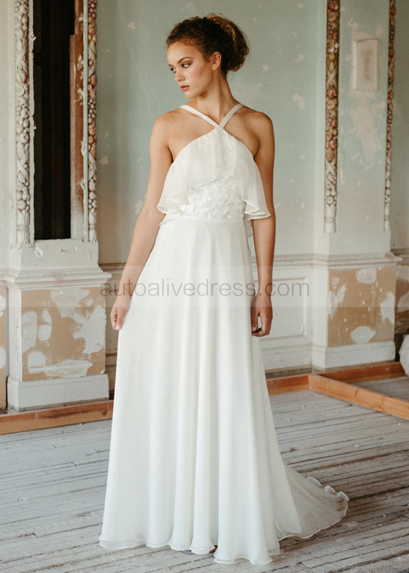 Halter Neck Ivory Embroidered Lace Chiffon Woodland Wedding Dress