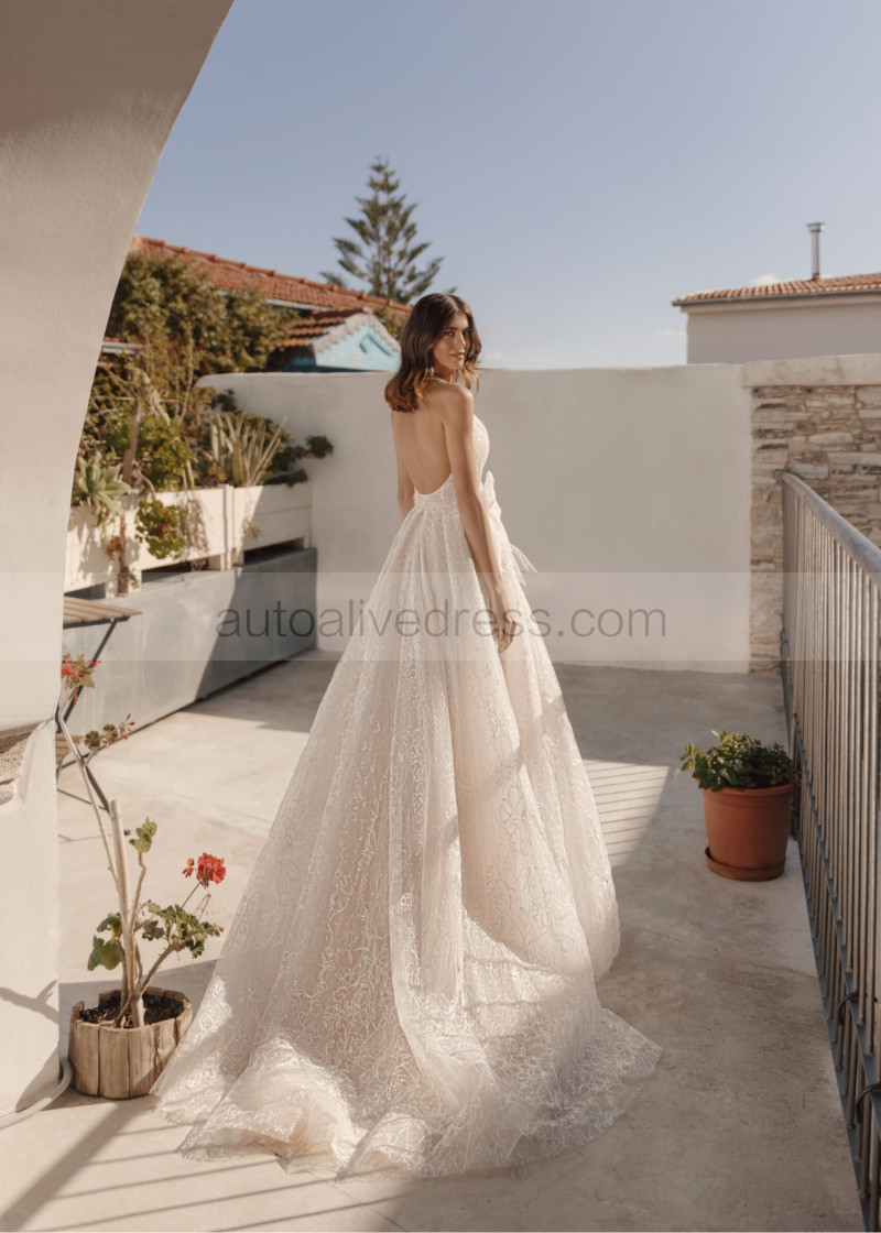 Halter Neck Ivory Lace Tulle Glitter Wedding Dress