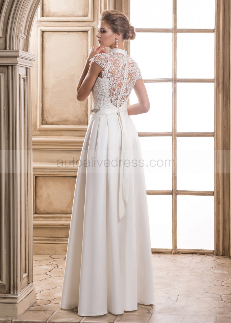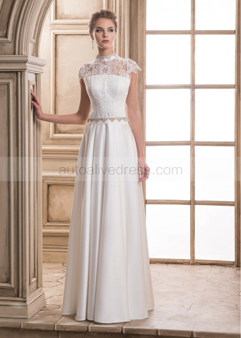 High Neck Lace Satin Wedding Dress Popular Bridal Dress