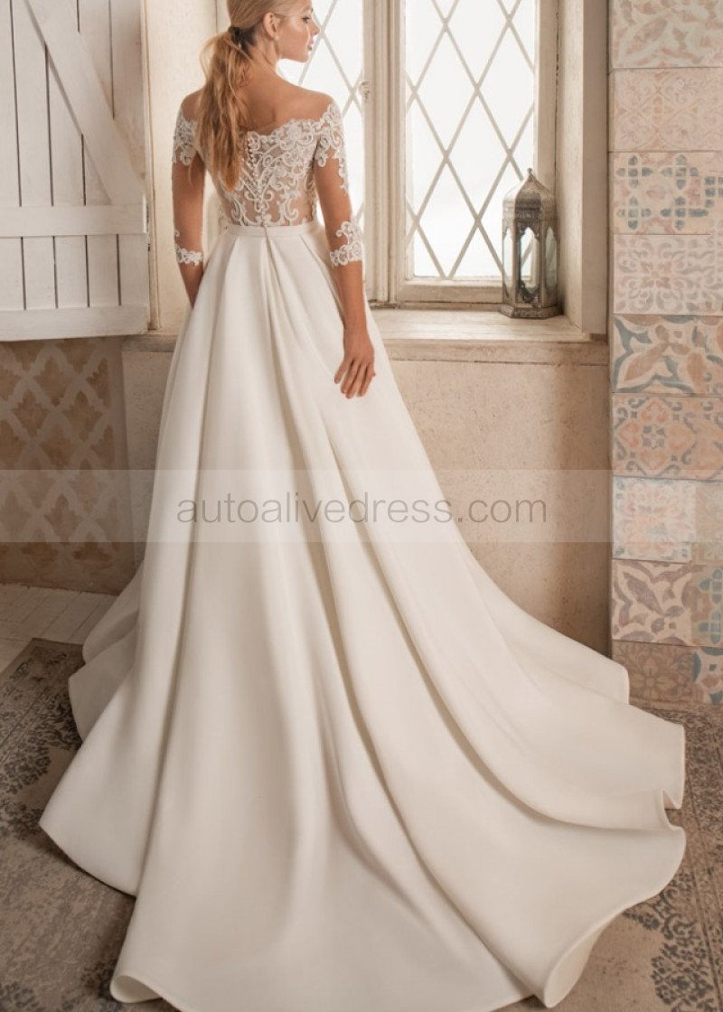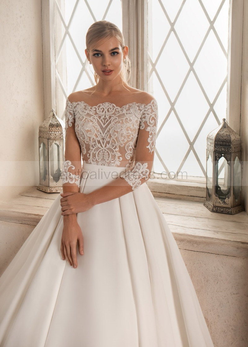Illusion Neck Ivory Lace Satin Gorgeous Wedding Dress