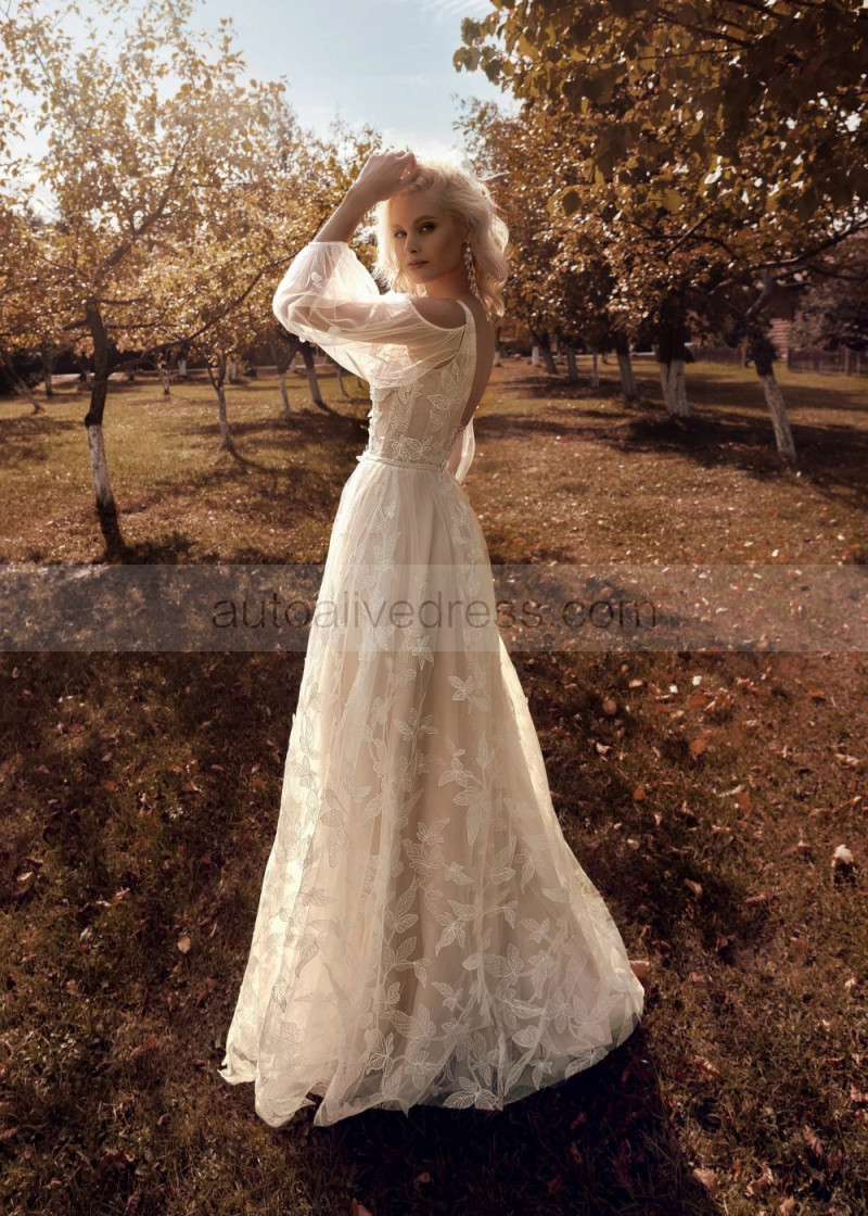 Ivory 3D Lace Tulle Unique Beaded Wedding Dress