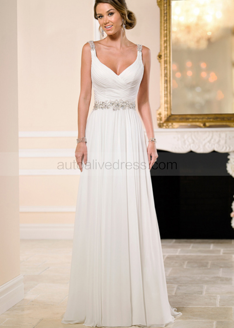 Ivory Beaded Chiffon Keyhole Back Wedding Dress