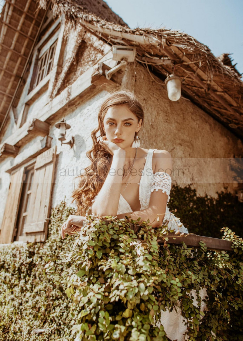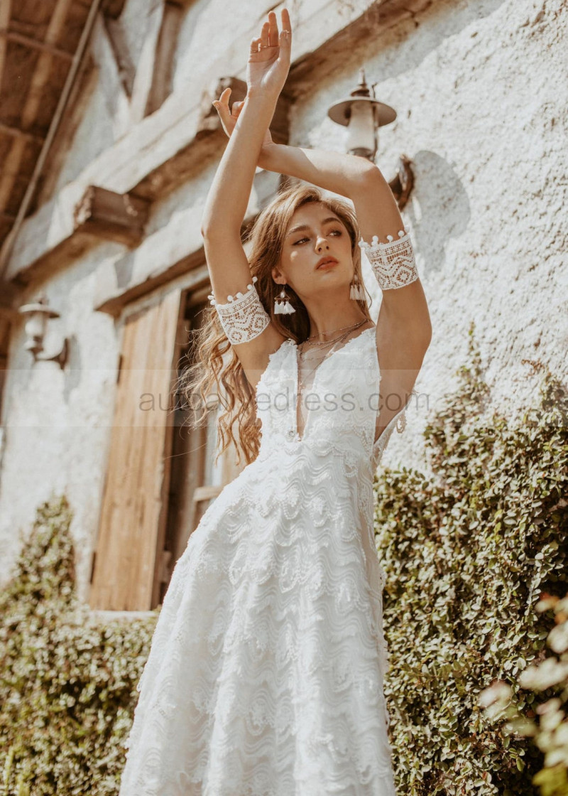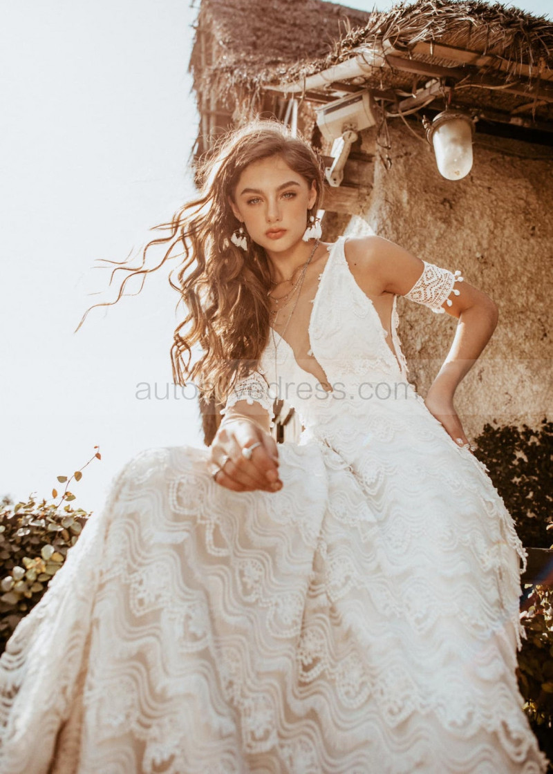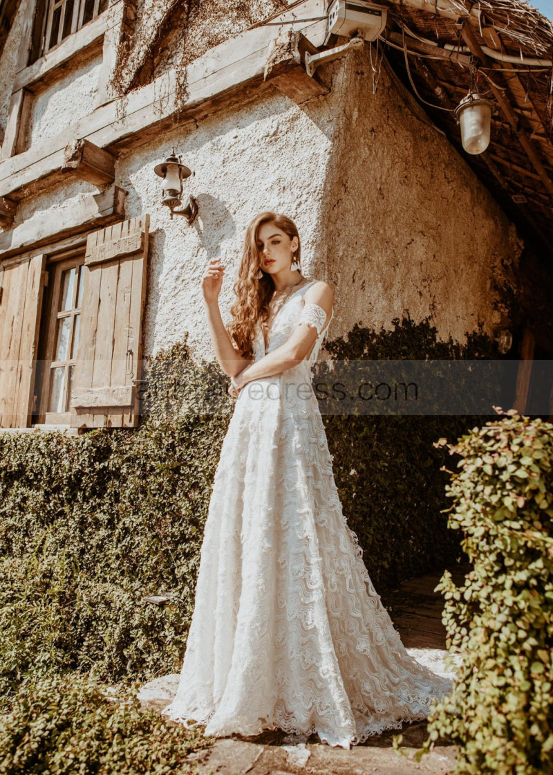 Ivory Boho Lace Wedding Dress With Detachable Sleeve