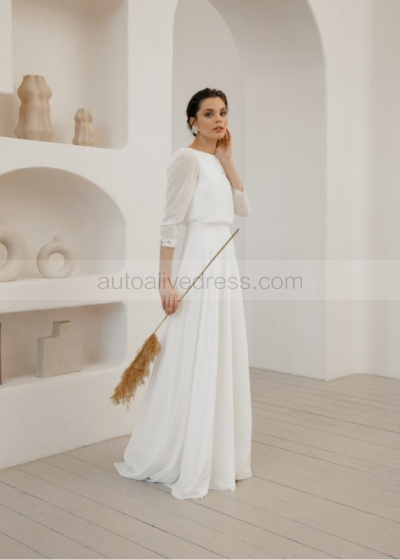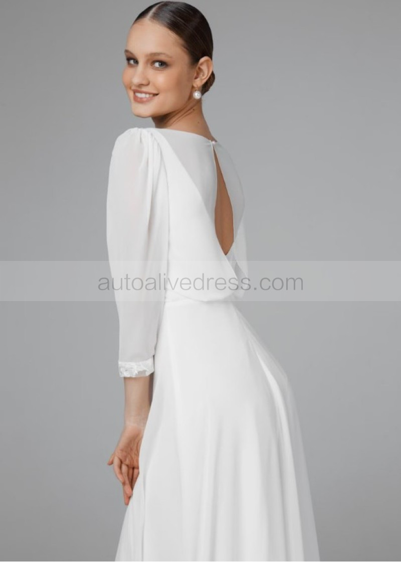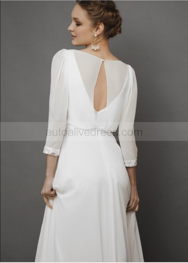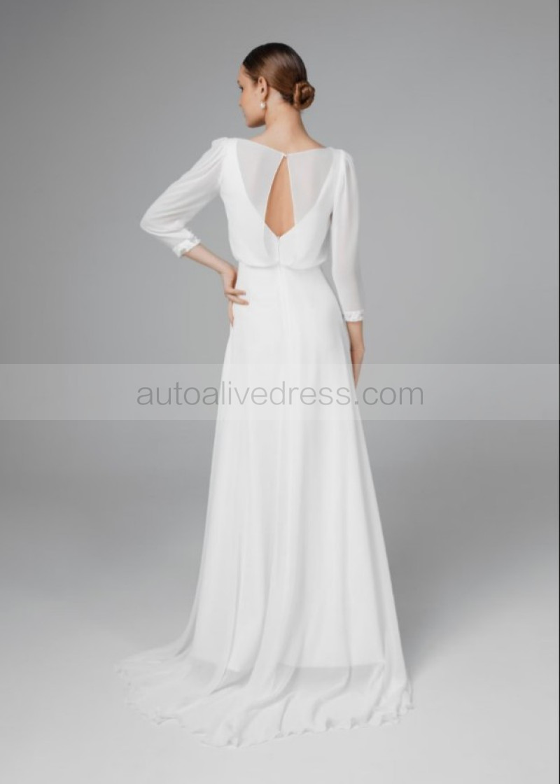 Ivory Chiffon Keyhole Back Rustic Wedding Dress