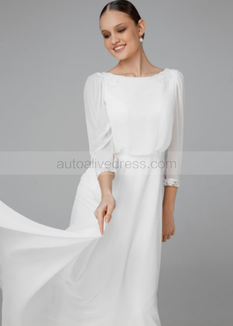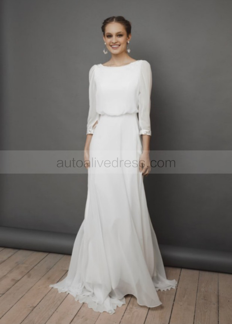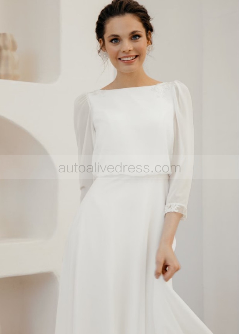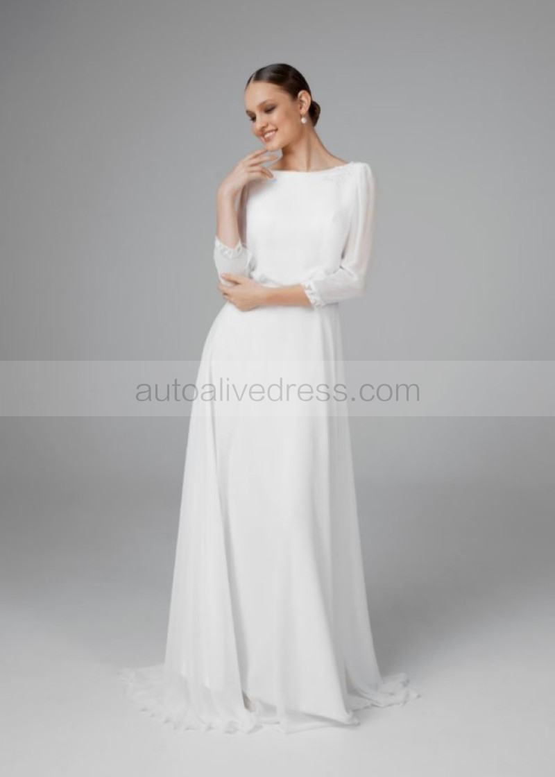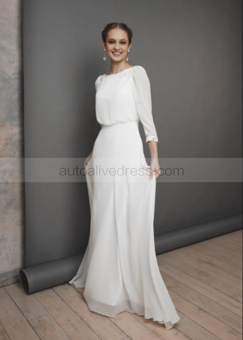 Ivory Chiffon Keyhole Back Rustic Wedding Dress