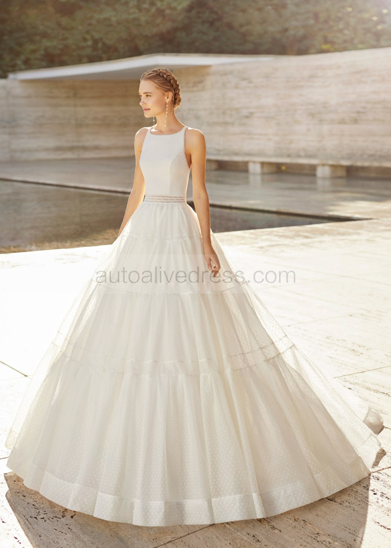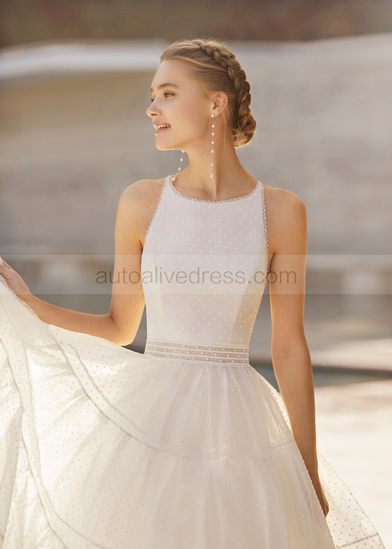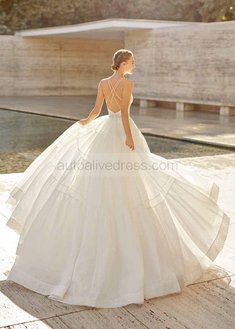 Ivory Dotted Tulle Cross Back Sweet Long Wedding Dress